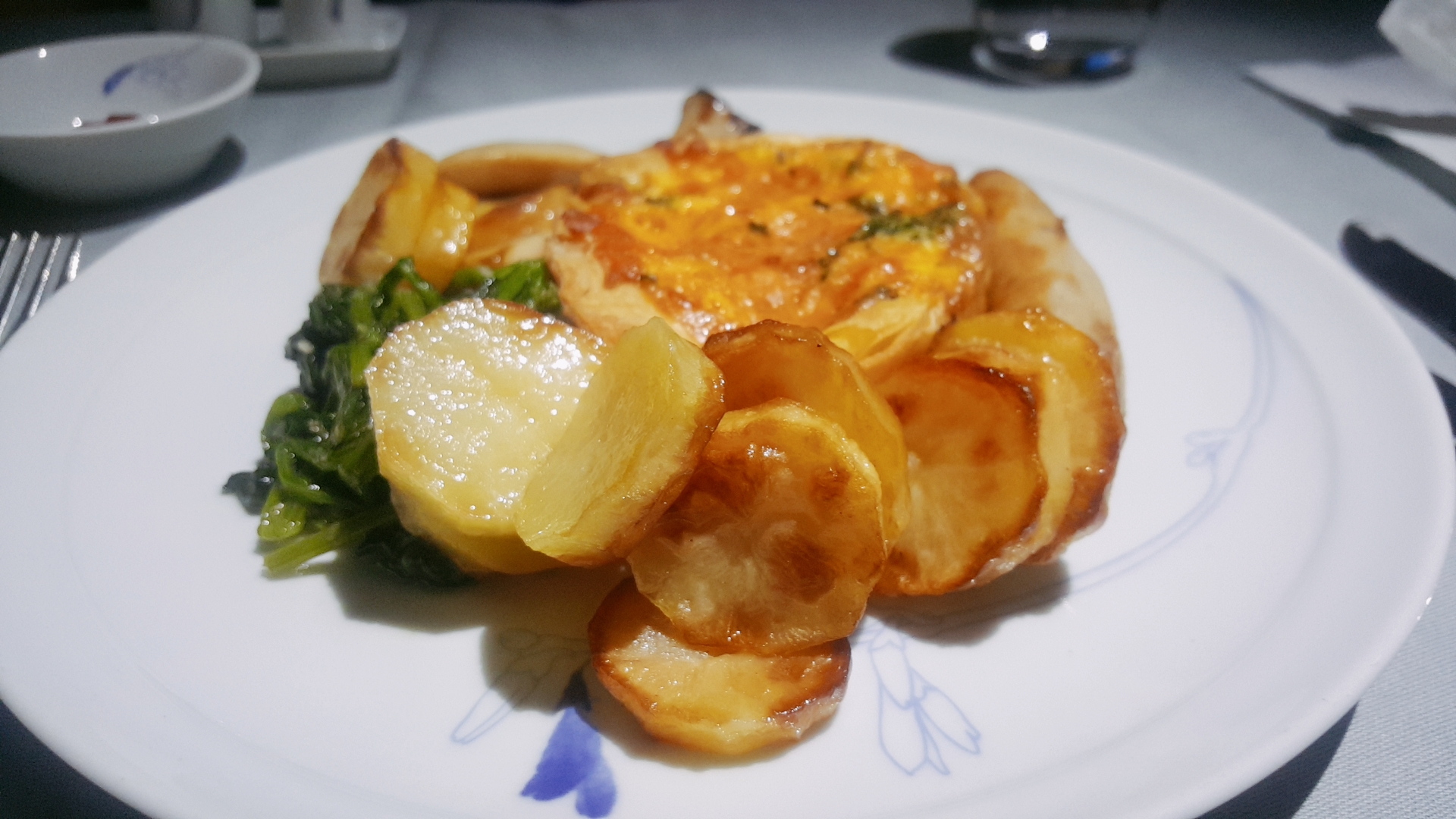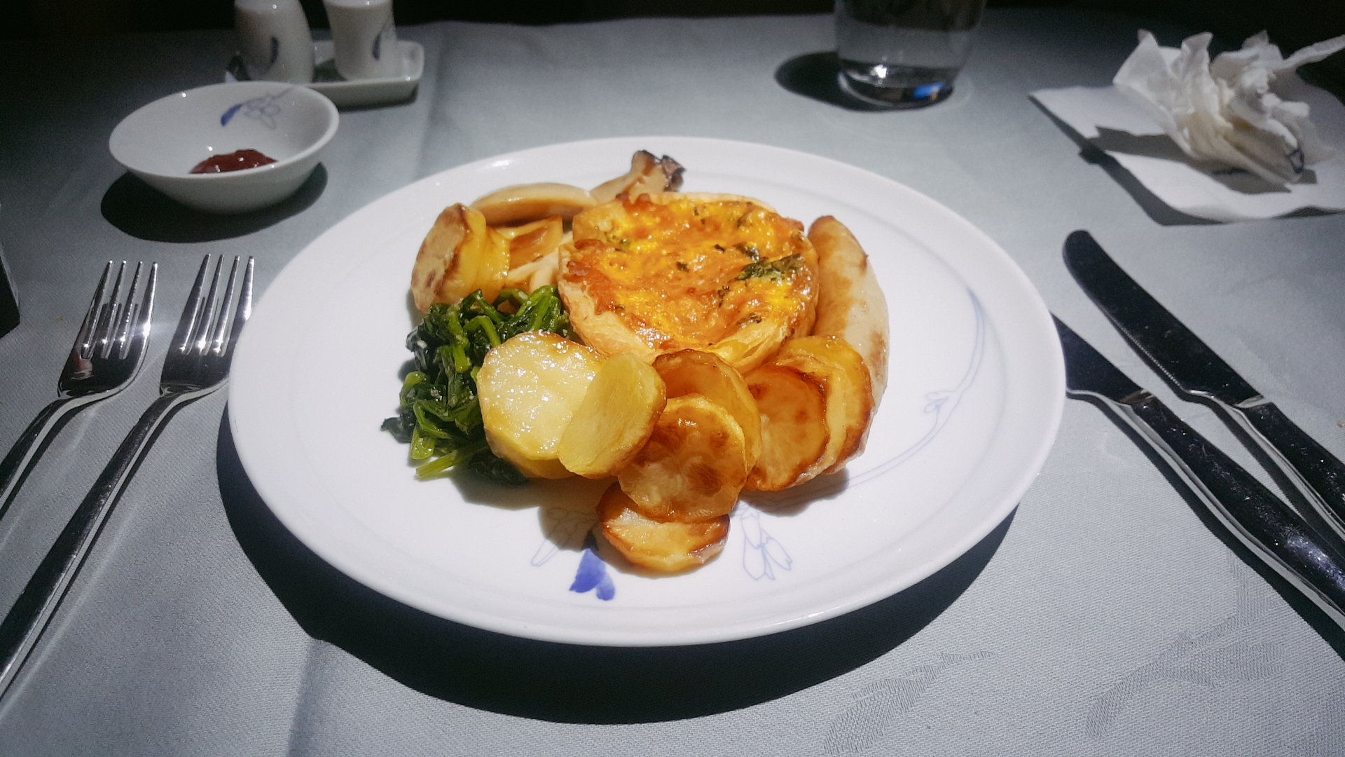 두번째 기내식은 아침식사로, 감자, 소세지를 곁들인 타르트를 선택했다.