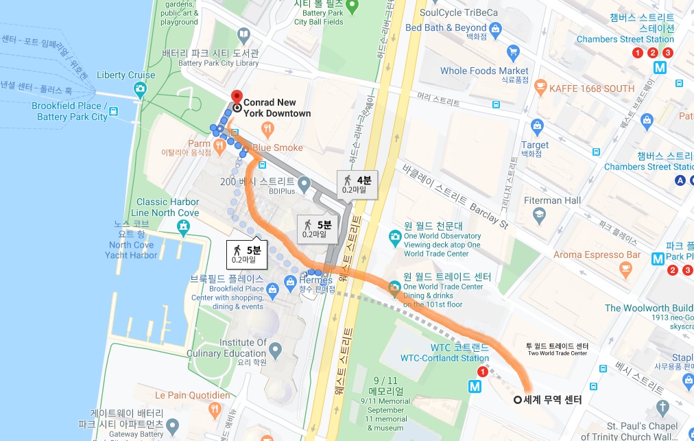 브룩필드플레이스 구경하며 올라와서 길 하나 건너면 바로 콘래드뉴욕이다. :)