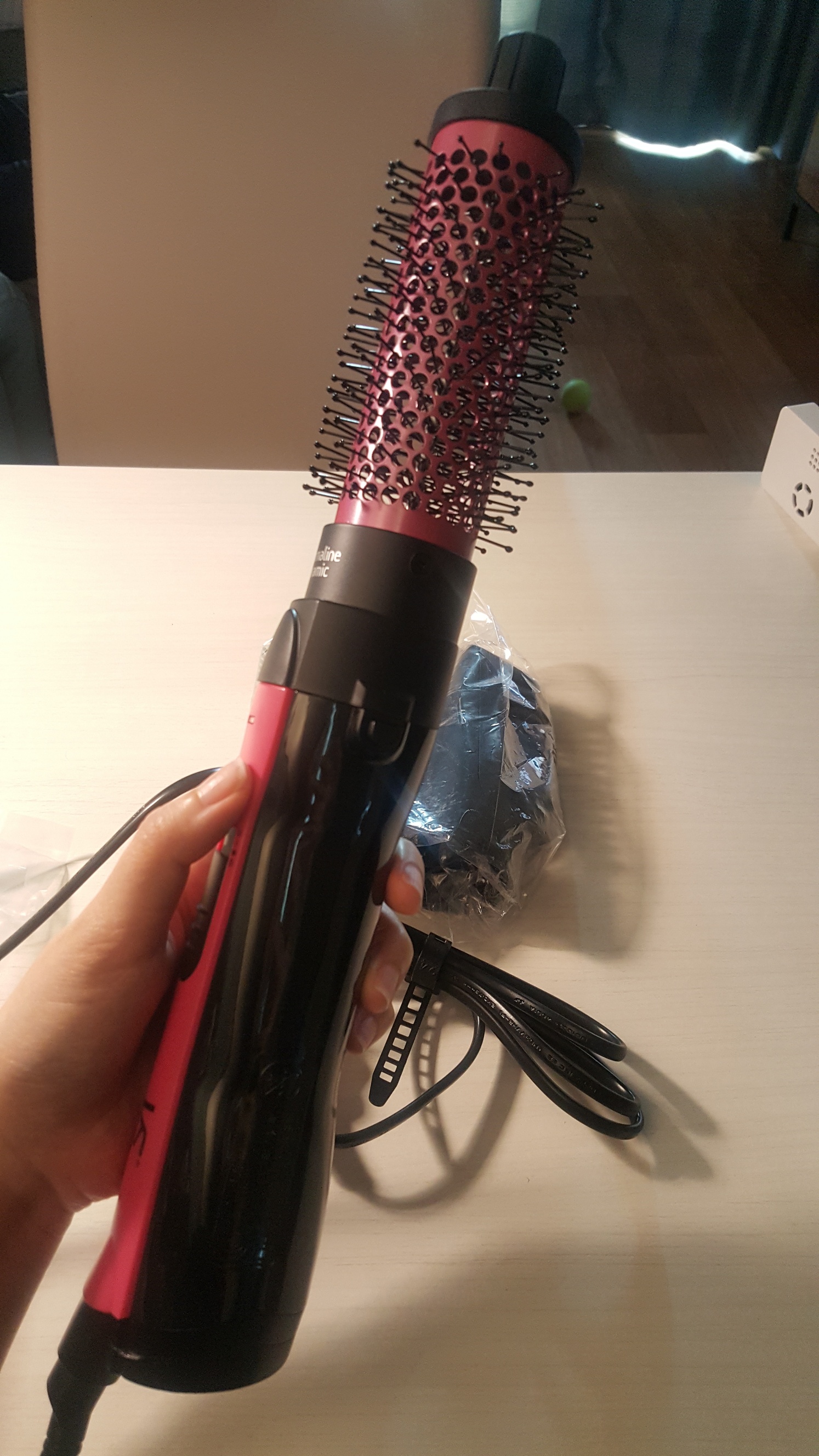 크기는 이정도? 롤빗 브러쉬를 꽂았을때 손 두뼘 정도되는 크기이고 본체 그립감이 좋다.