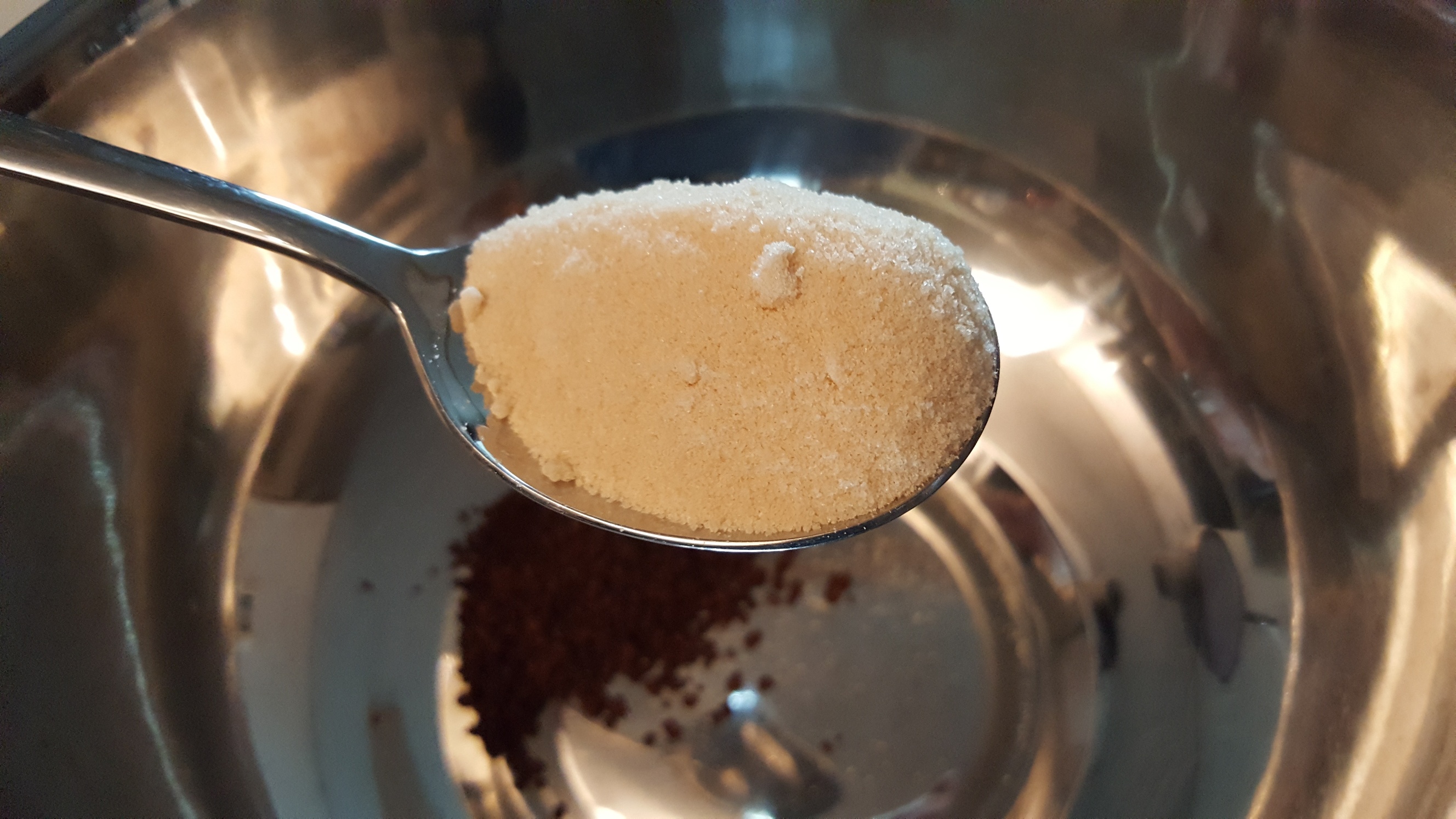 흑설탕 백설탕 상관없이 커피가루랑 동일한 양을 준비한다.