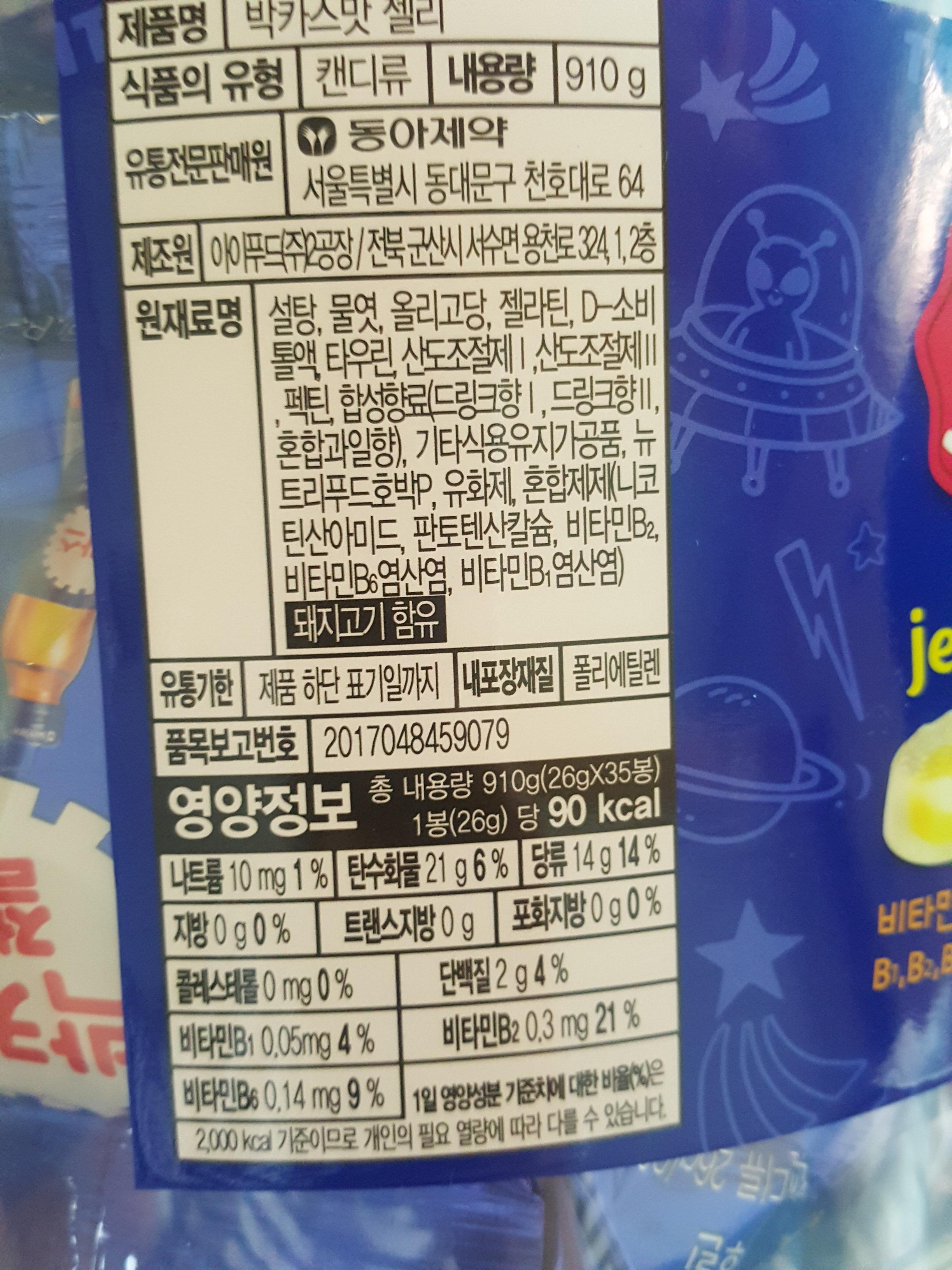 박카스를 만드는 그 동아제약에서 이 젤리도 판매하는거네요.