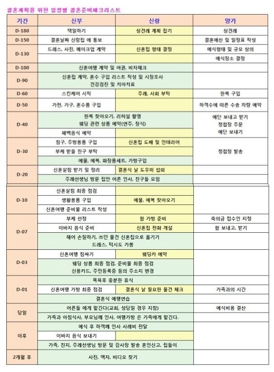 결혼당일 체크표, 신혼여행 후 일정, 호칭 등등 필요한 내용들 엑셀파일로 정리해서 공유해둡니다.