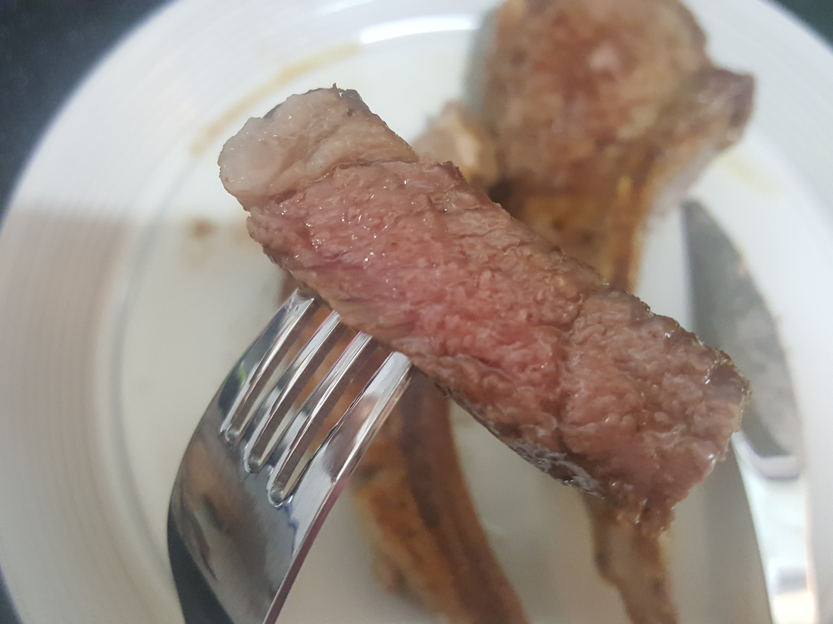 소고기 스테이크랑 비슷한 맛이구요. 기름진 부위는 먹기에 좀 느끼해서 떼어냈어요.
