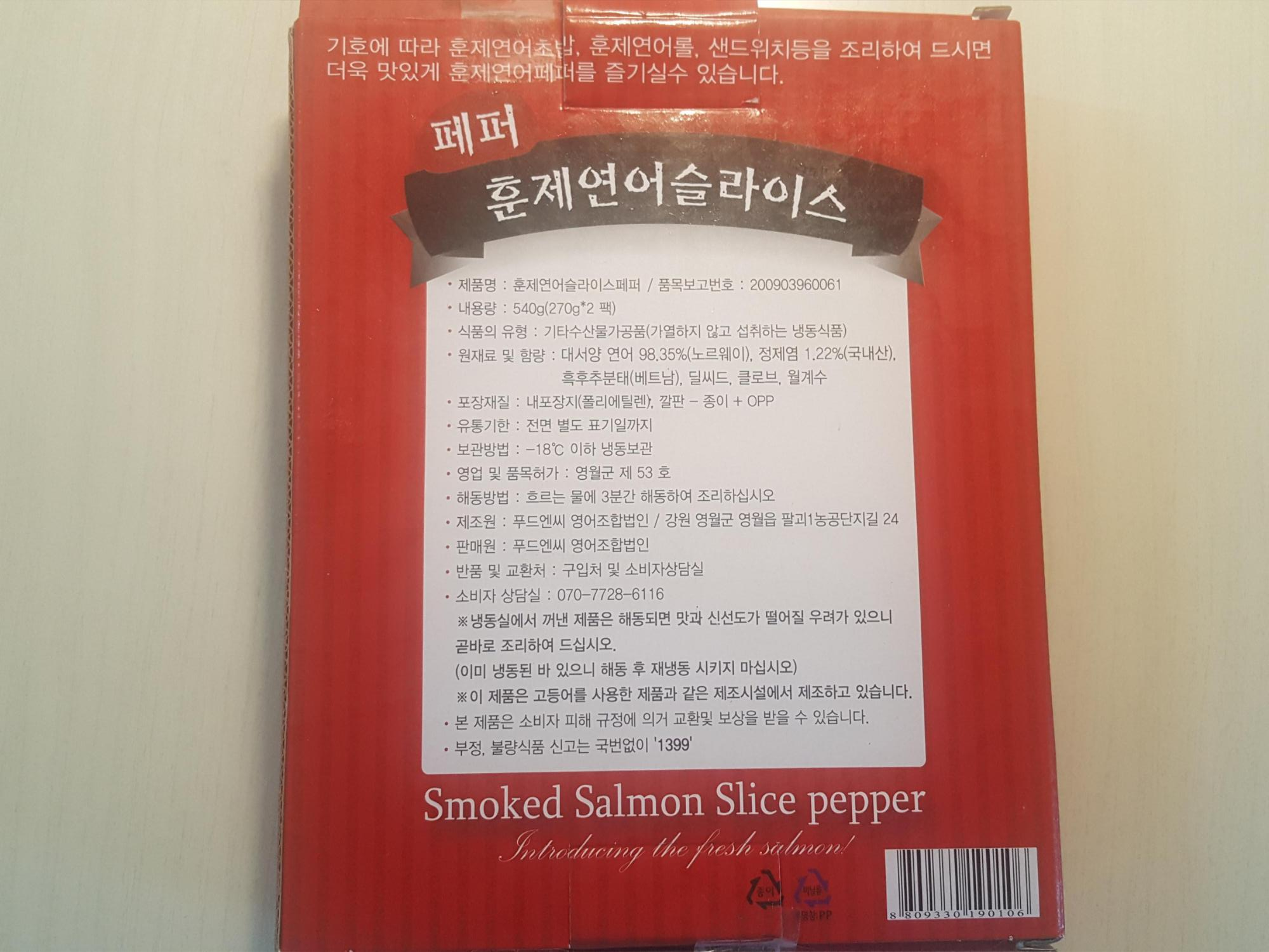 연어는 노르웨이산 연어이고요, 후추는 베트남산 후추가 들어가있네요.