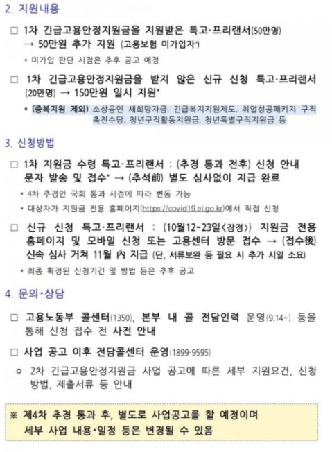 3. 특고, 프리랜서 2차 재난지원금 / 긴급고용안정지원금 신청기간