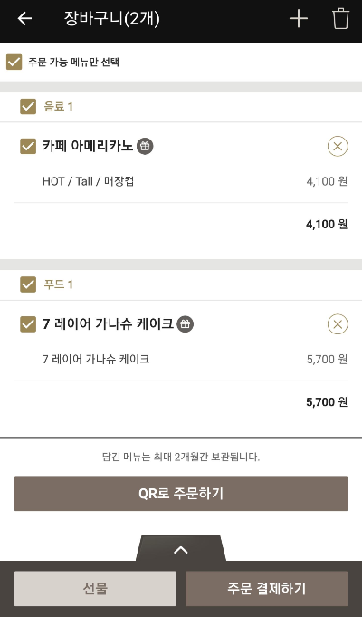 저는 아메리카노랑 7레이어 가나슈 케이크 한조각 셋트 기프티콘이 있어서