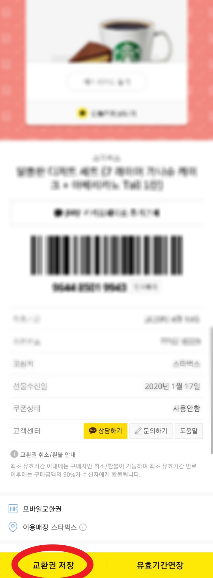 교환권 저장 버튼을 눌러서 핸드폰에 저장해줍니다.