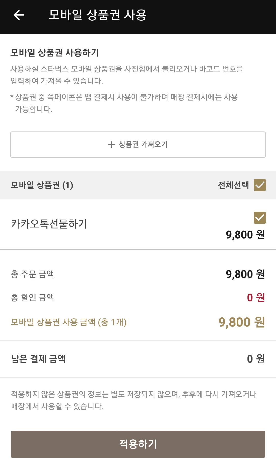 5. 그럼 기프티콘이나 카카오톡 선물하기가 적용이 되면서