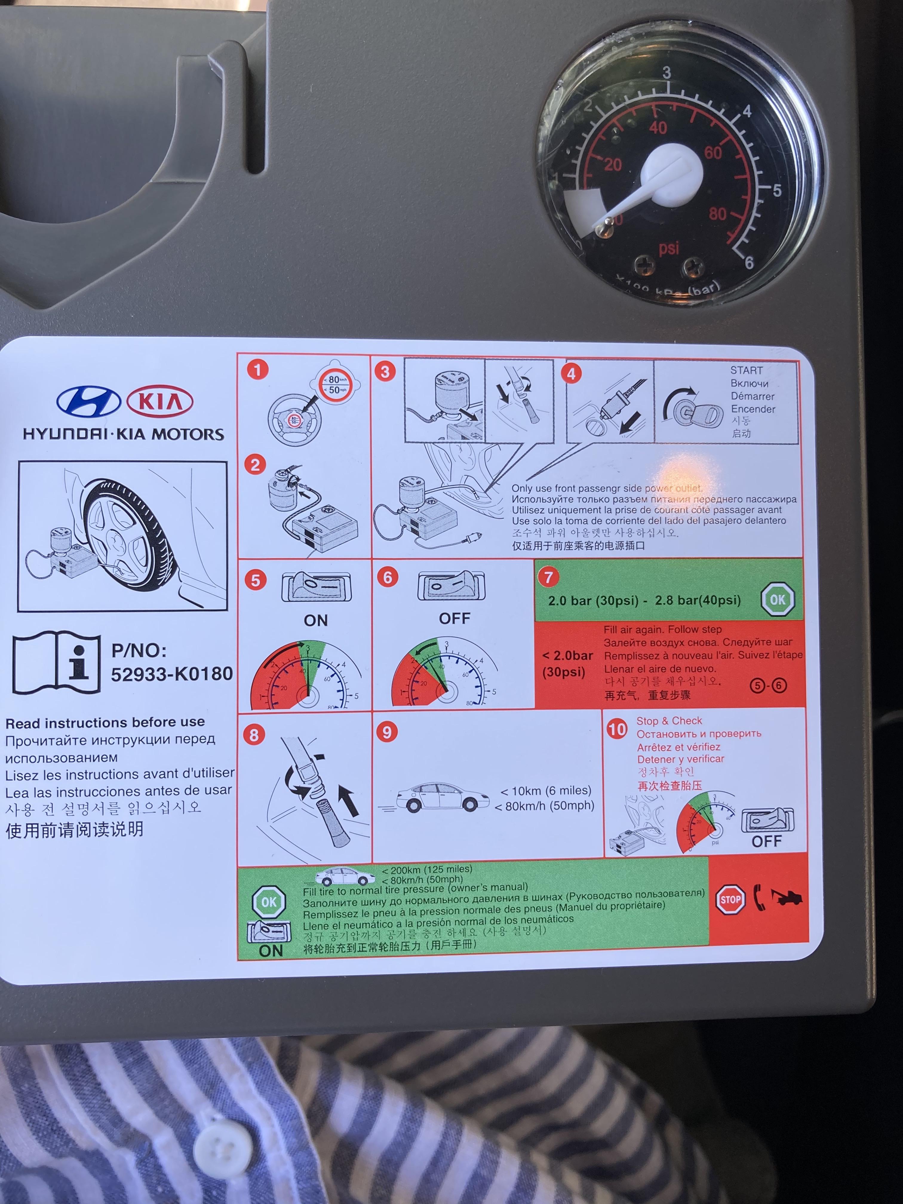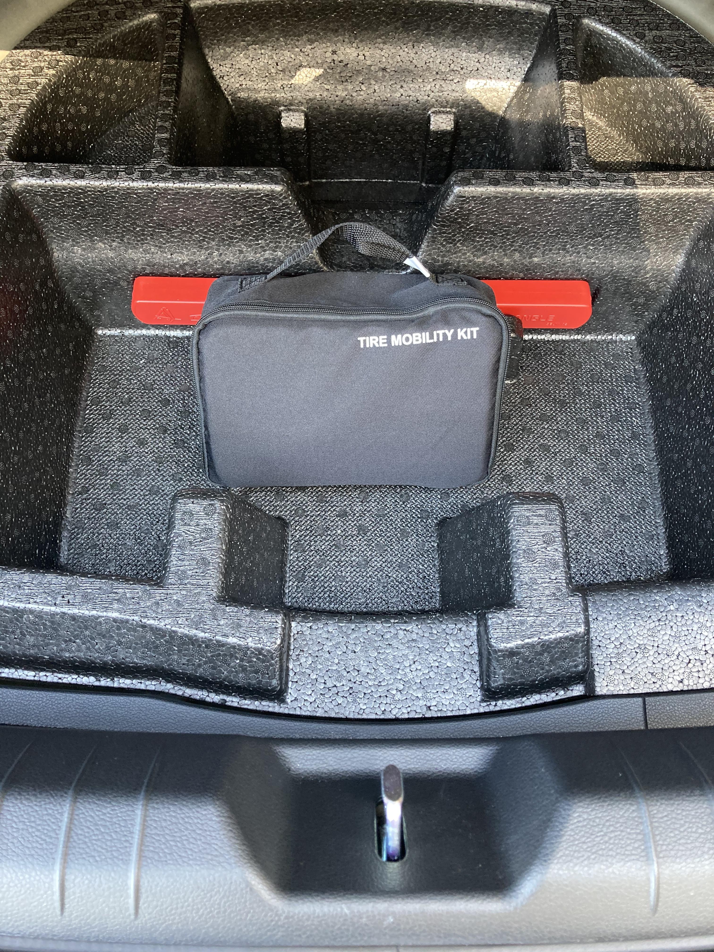 타이어 공기압을 체크하고 싶거나, 타이어 공기압 경고등이 뜰 경우 트렁크에서 잠자고 있는 타이어 리페어 수리킷을 활용해 공기압 관리 해보세요.