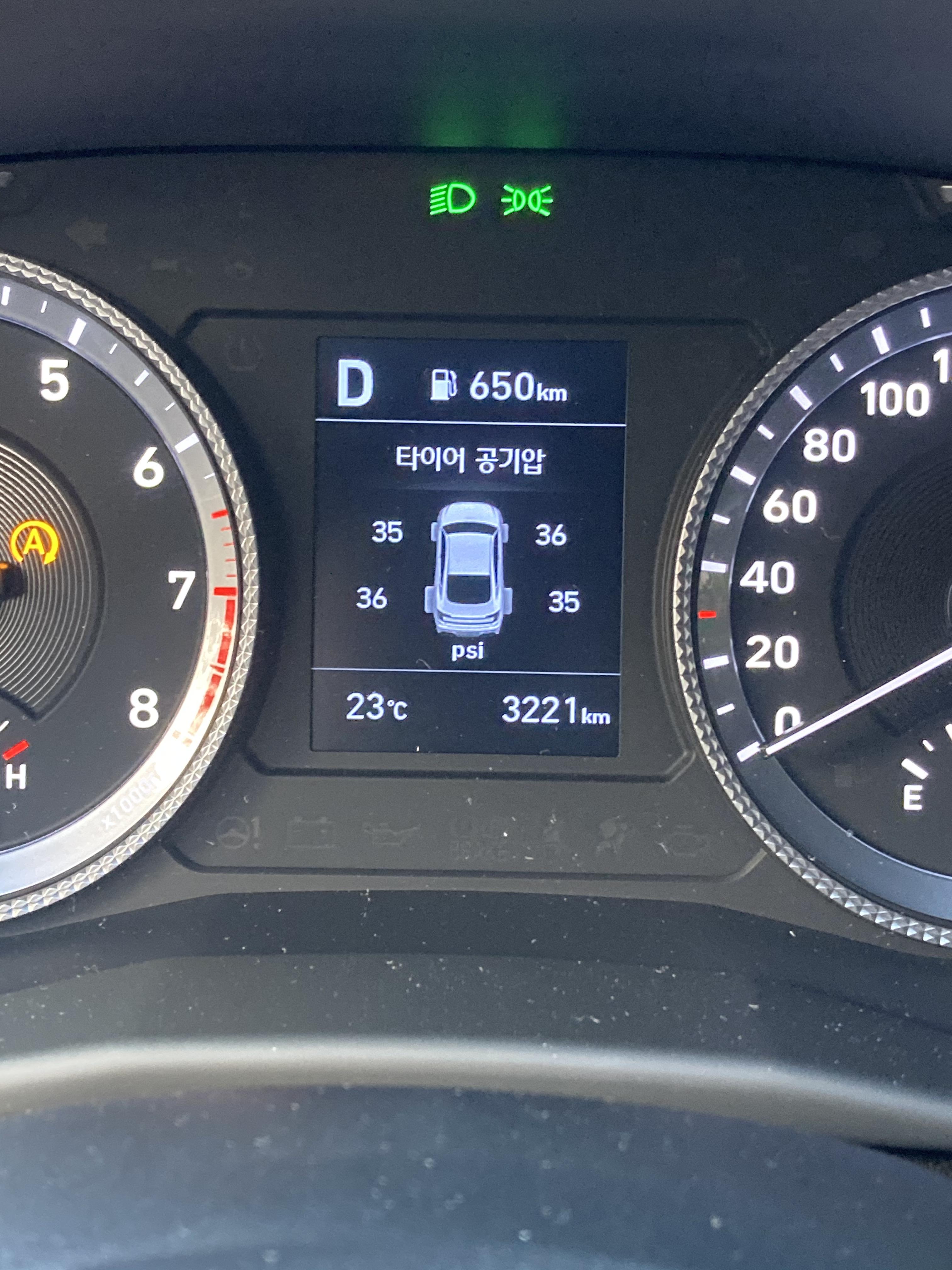 차량 매뉴얼 대로 적정공기압 수준인 35 상회하는 수준으로 맞췄습니다.