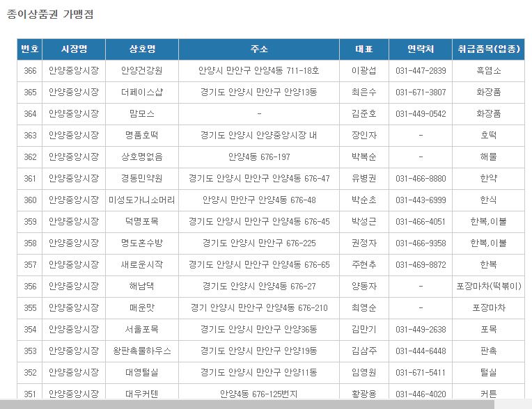 제가 살고있는 경기도 안양에 위치한 안양중앙시장의 가맹점입니다.