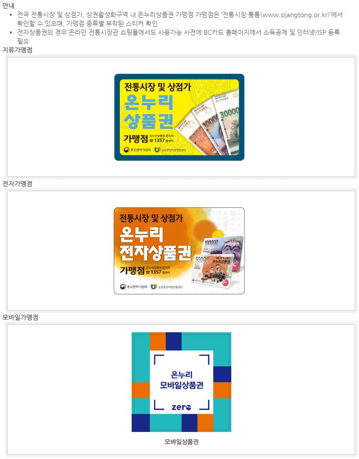 전자상품권은 우리은행, 대구은행, 부산은행, 경남은행, 기업은행, 농협은행, 비씨카드에서 구입가능하고요.