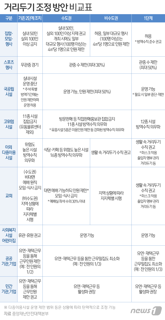 사회적 거리두기 1단계는 기존 2단계 조치와 차이점이 있는데요.