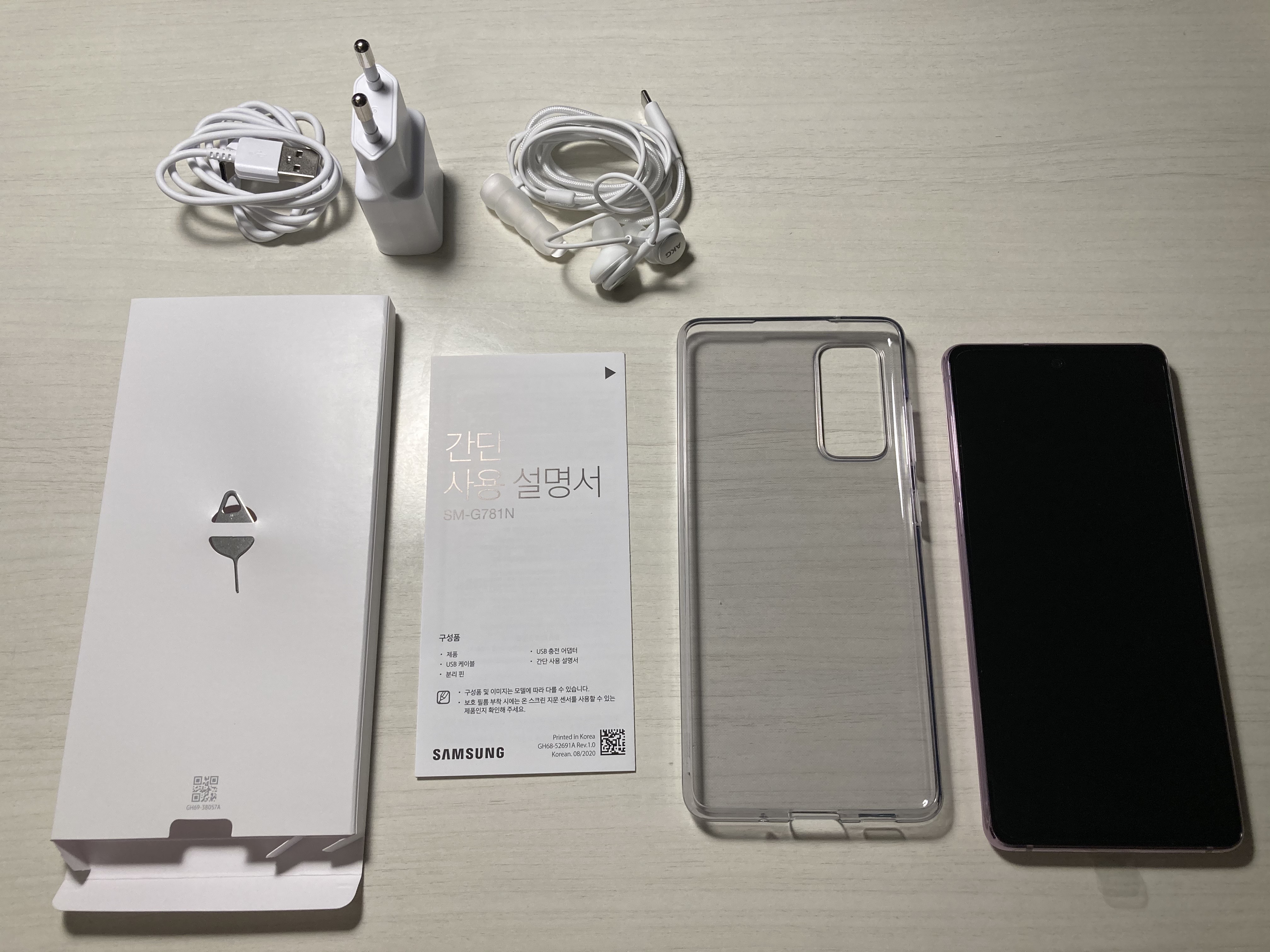 박스를 열자마자 갤럭시 S20 FE가 먼저 보이고요.