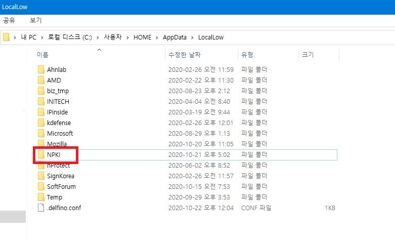 4. 이 폴더 안에 'NPKI' 폴더가 보이실겁니다.