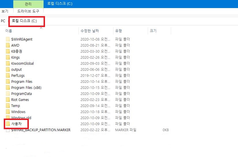 C 드라이브에 '사용자' 폴더를 들어가주세요.