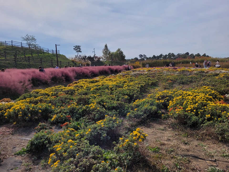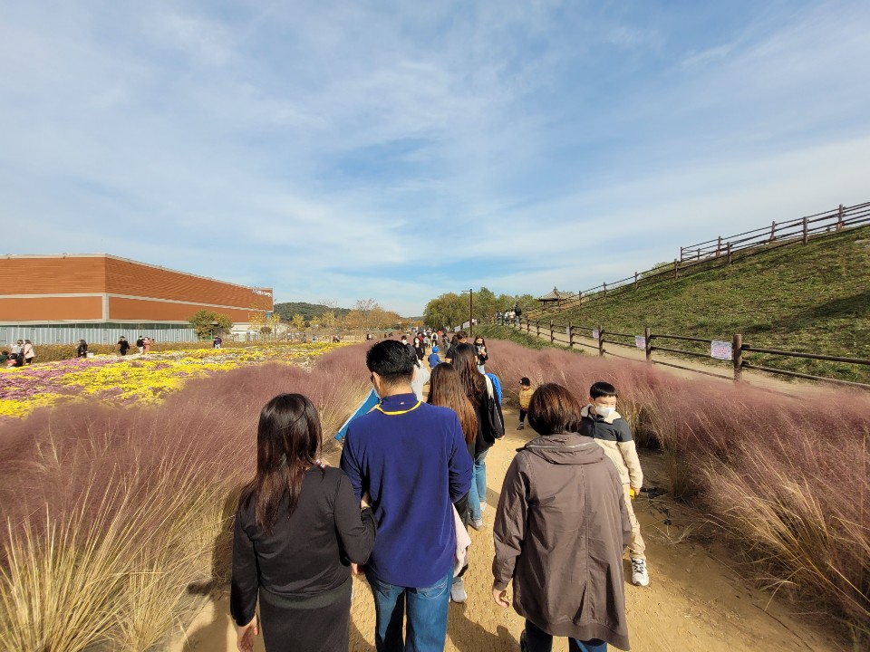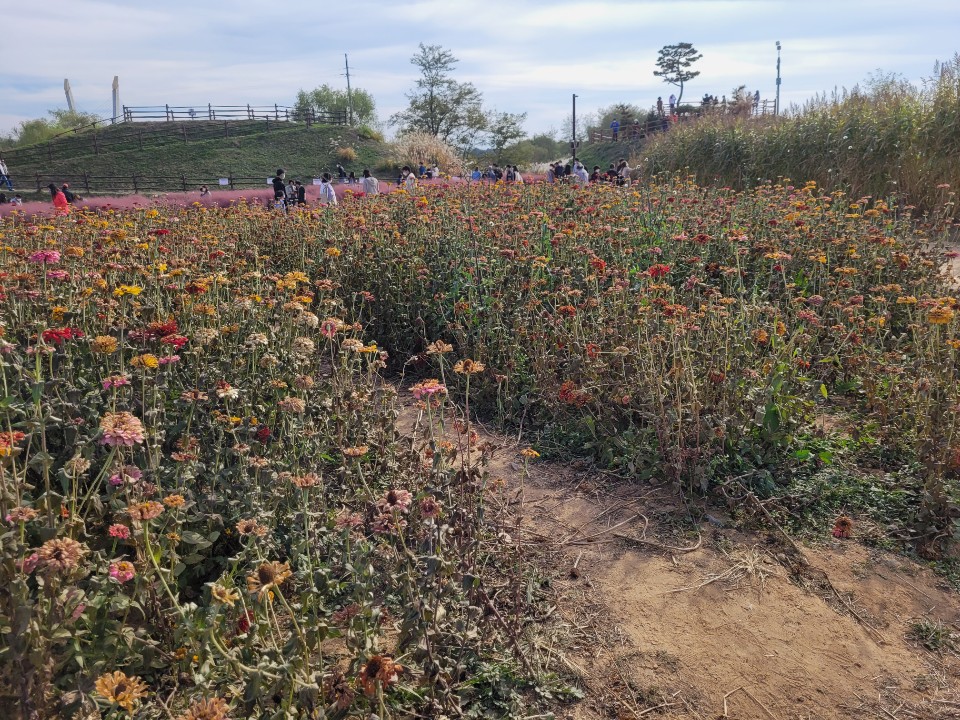 핑크뮬리를 보고나면 백일홍, 코스모스, 국화 등등 꽃 종류별로 예쁘게 모여있어서 길따라 걸으며 구경하시면돼요.