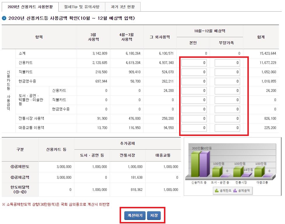 3. 신용카드 소득공제액 계산하기 부분을 입력합니다.