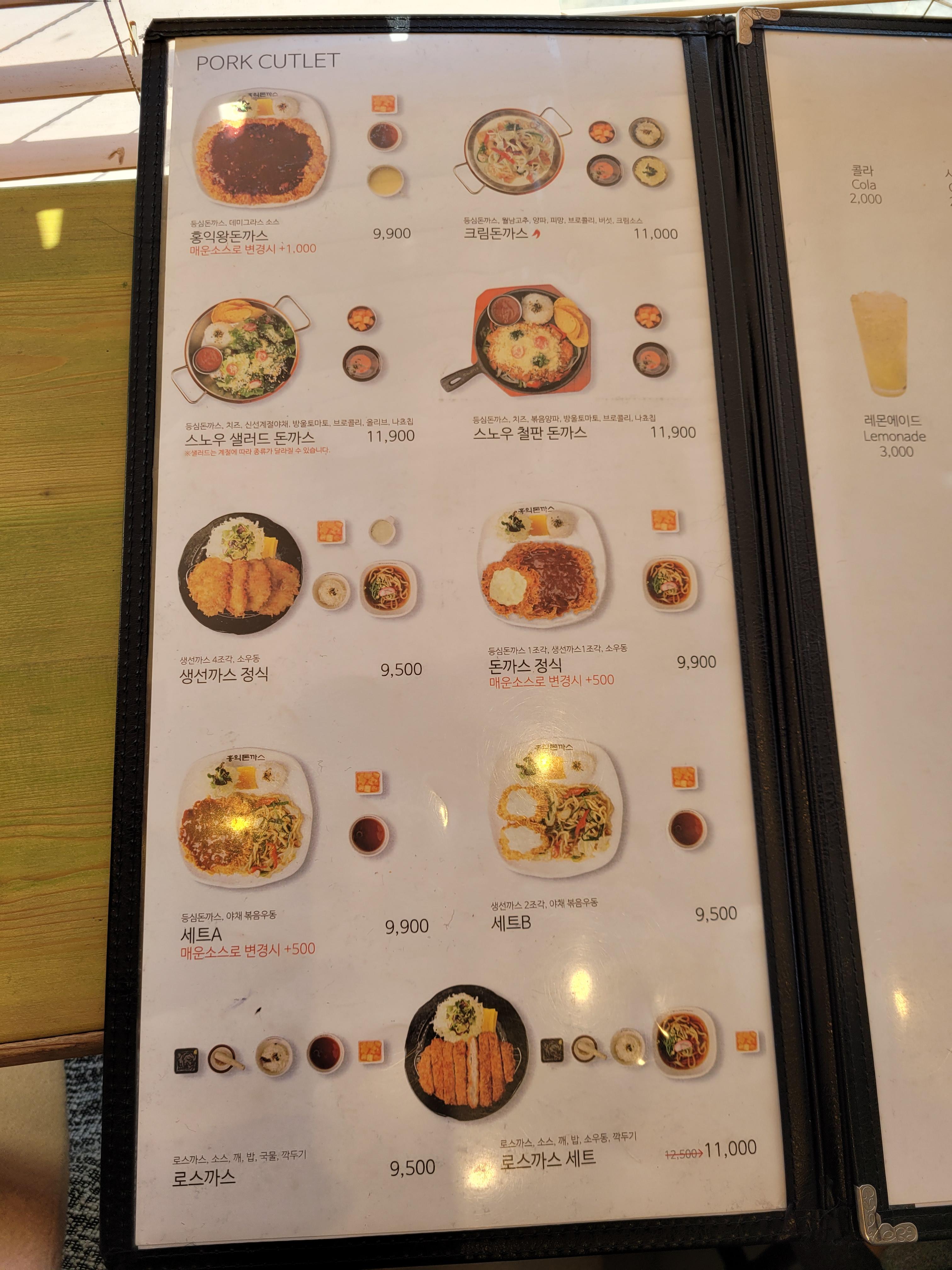 돈까스메뉴는 9900~11900원이고, 시그니처메뉴는 왕돈까스에요.^^