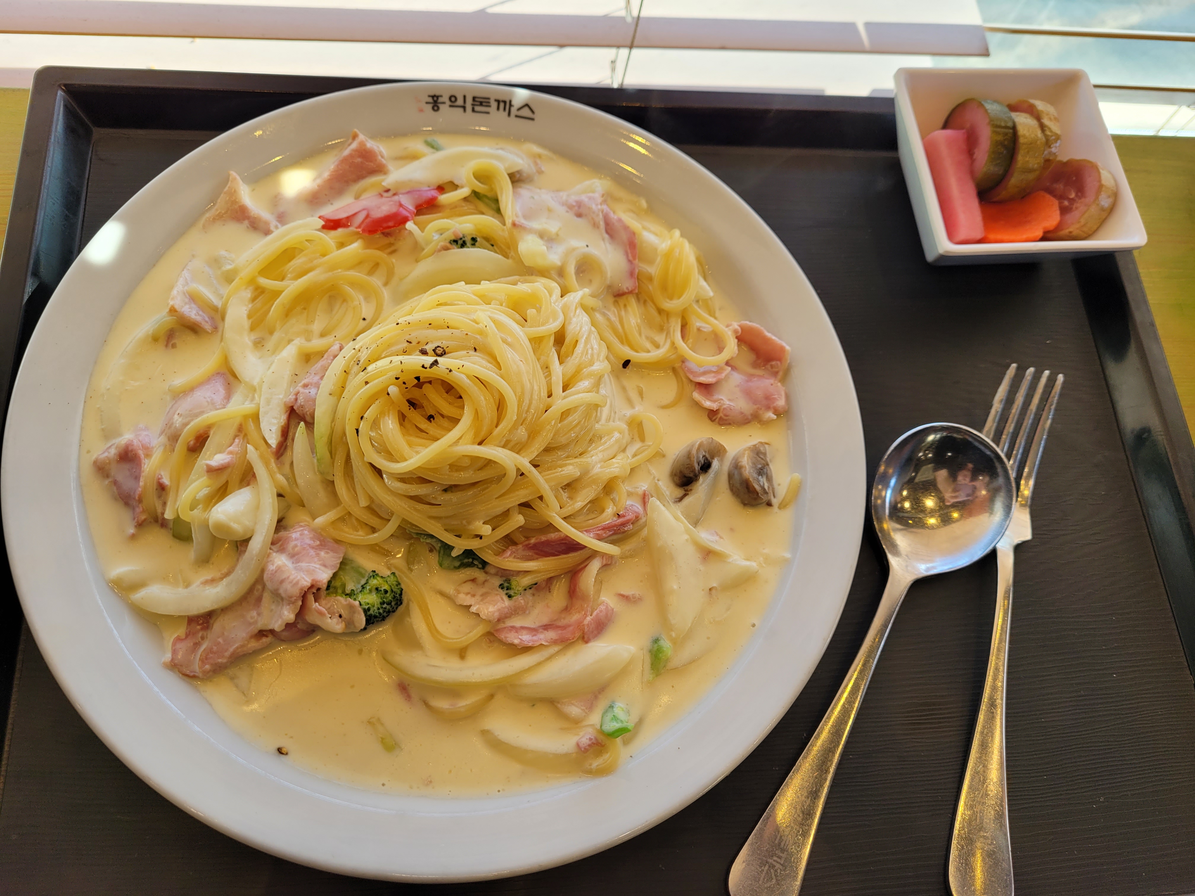 저희는 두명이 방문했고, 왕돈까스와 까르보나라를 주문했어요.