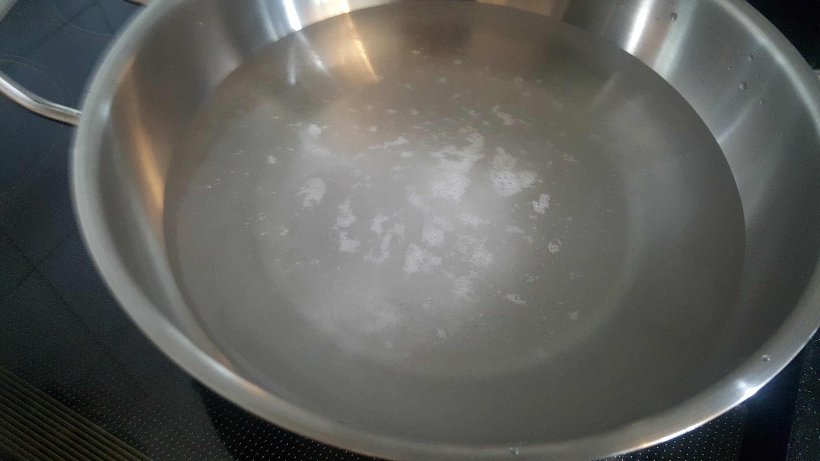 5분정도 끓여주고 베이킹소다물은 버려주세요.