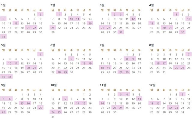 다음은 주말에 결혼을 많이 하시니까, 주말인 길일을 정리해보겠습니다.