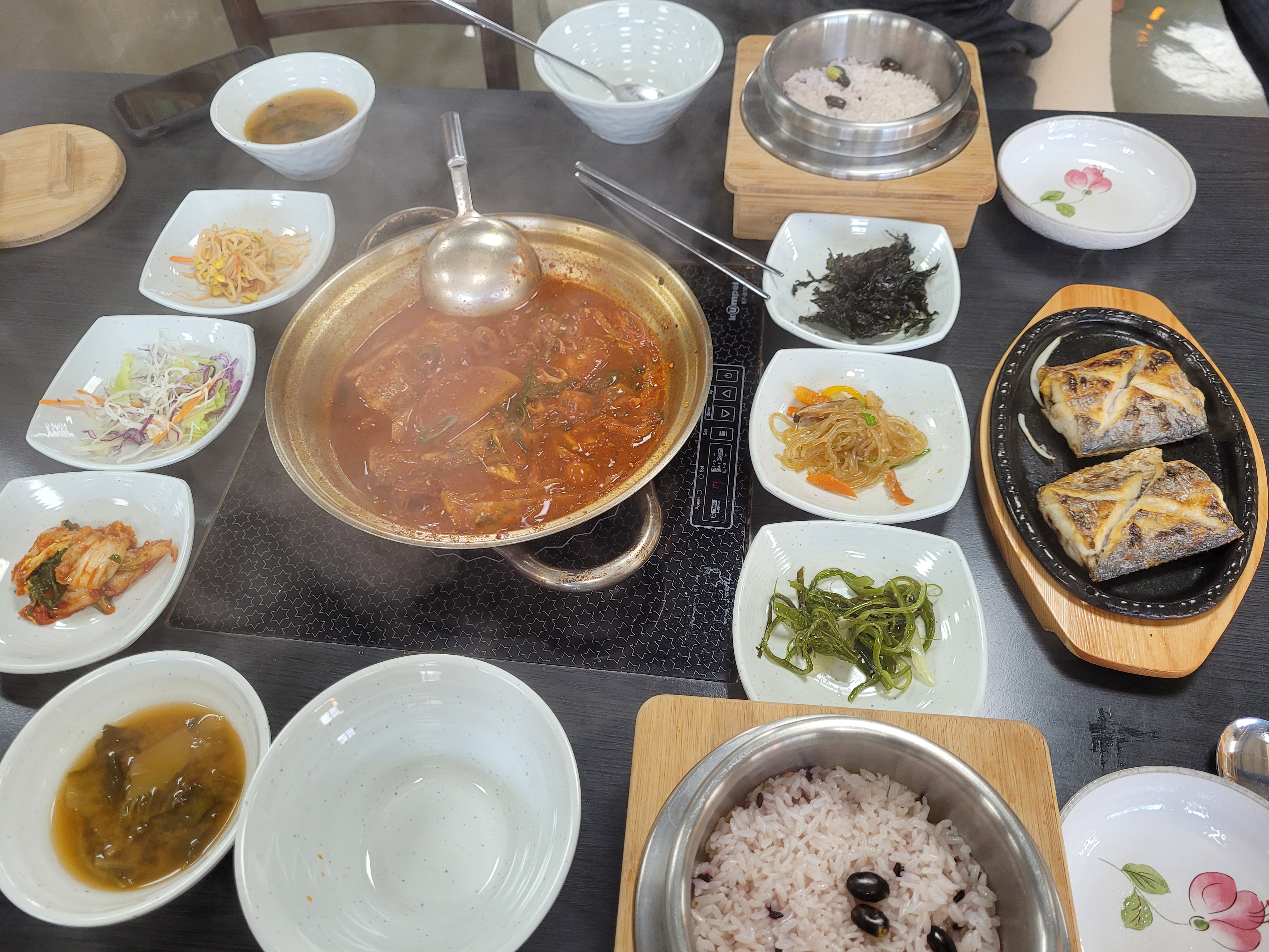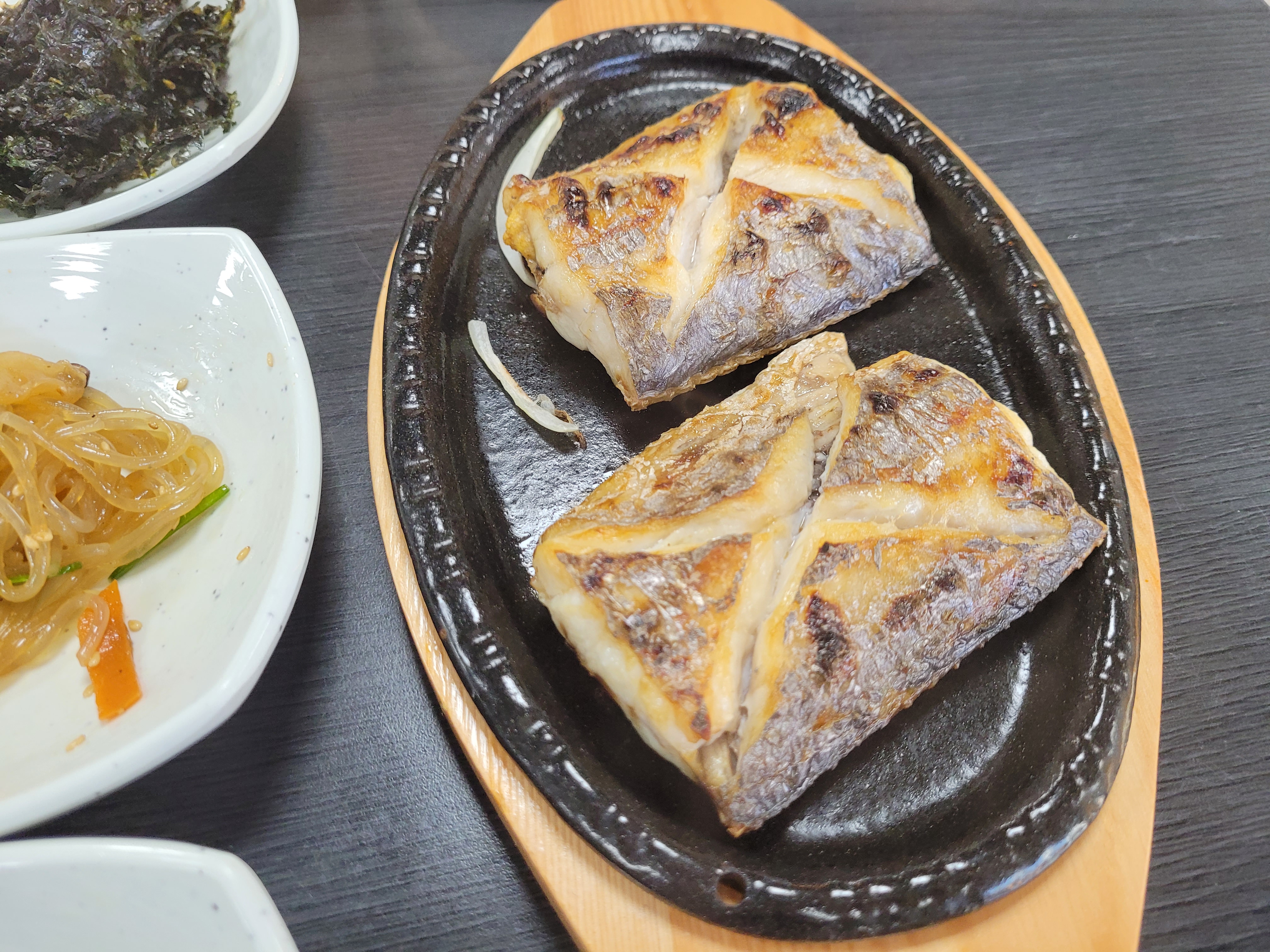 잡채가 맛있어서 셀프코너에서 더 가져다먹었고요. 생선조림이랑 구이가 있으니 반찬이 필요없더라고요.