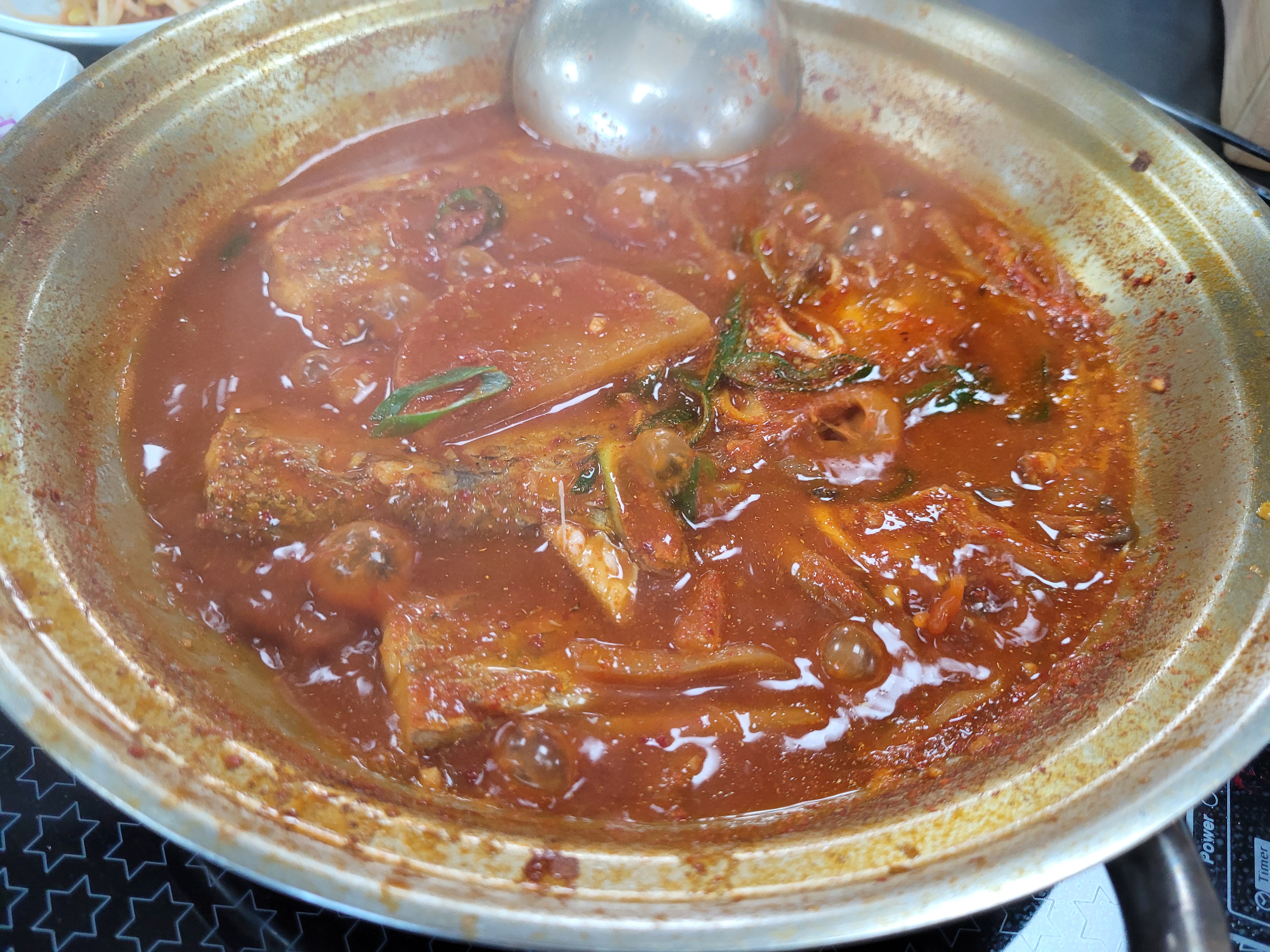 갈치 3조각정도랑 무, 감자가 같이 들어있는데, 1인분인데 푸짐한 편이고 감칠맛도 좋았어요.