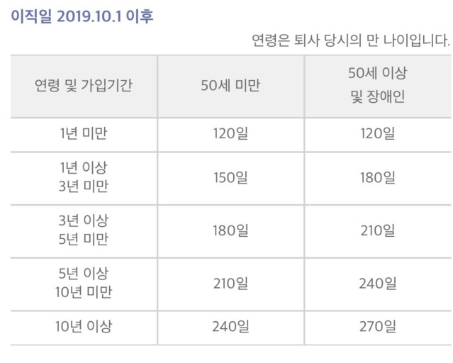 지급기간은 피보험기간 및 연령에 따라 120일~270일간 수령하실 수 있습니다.