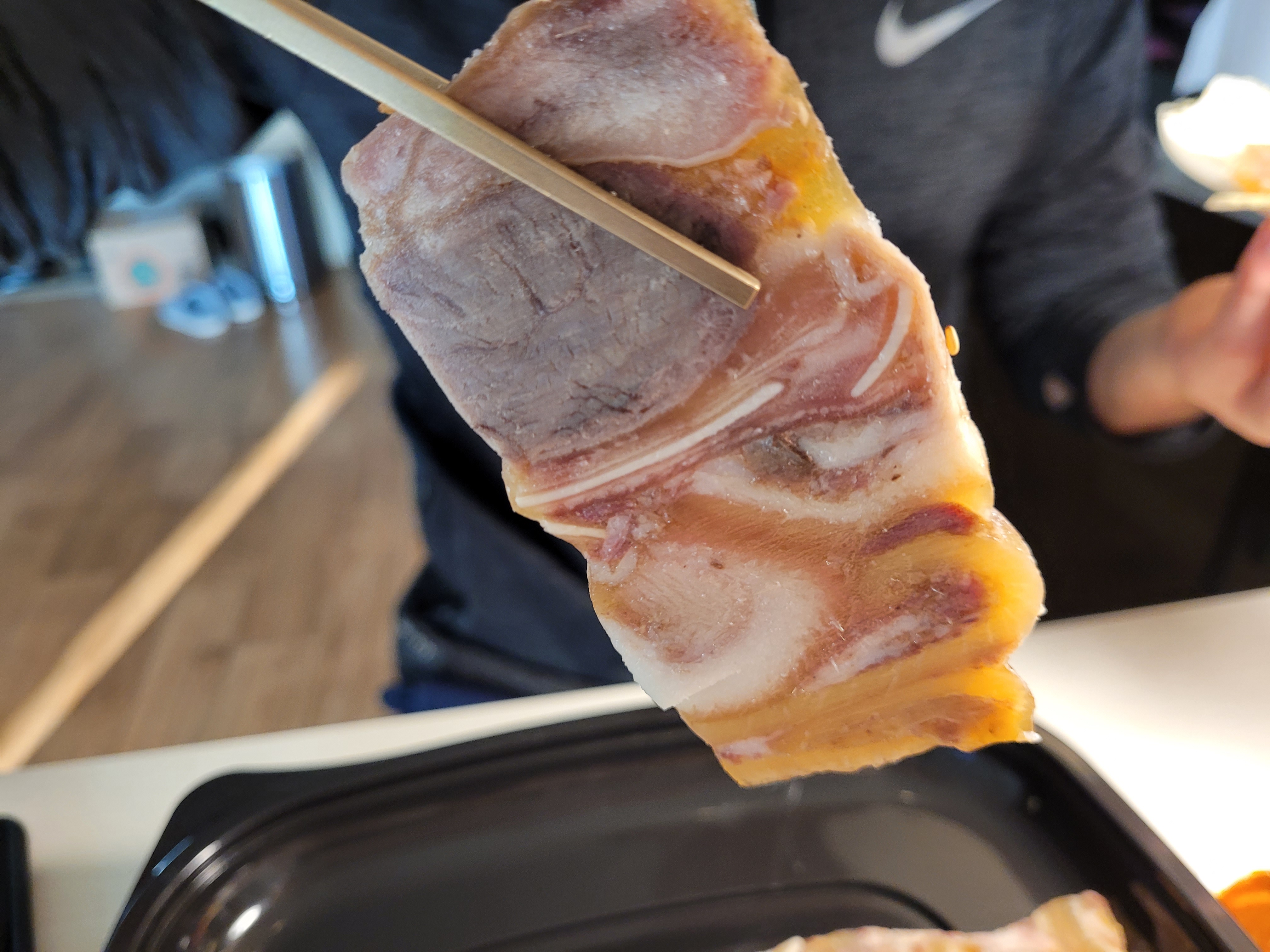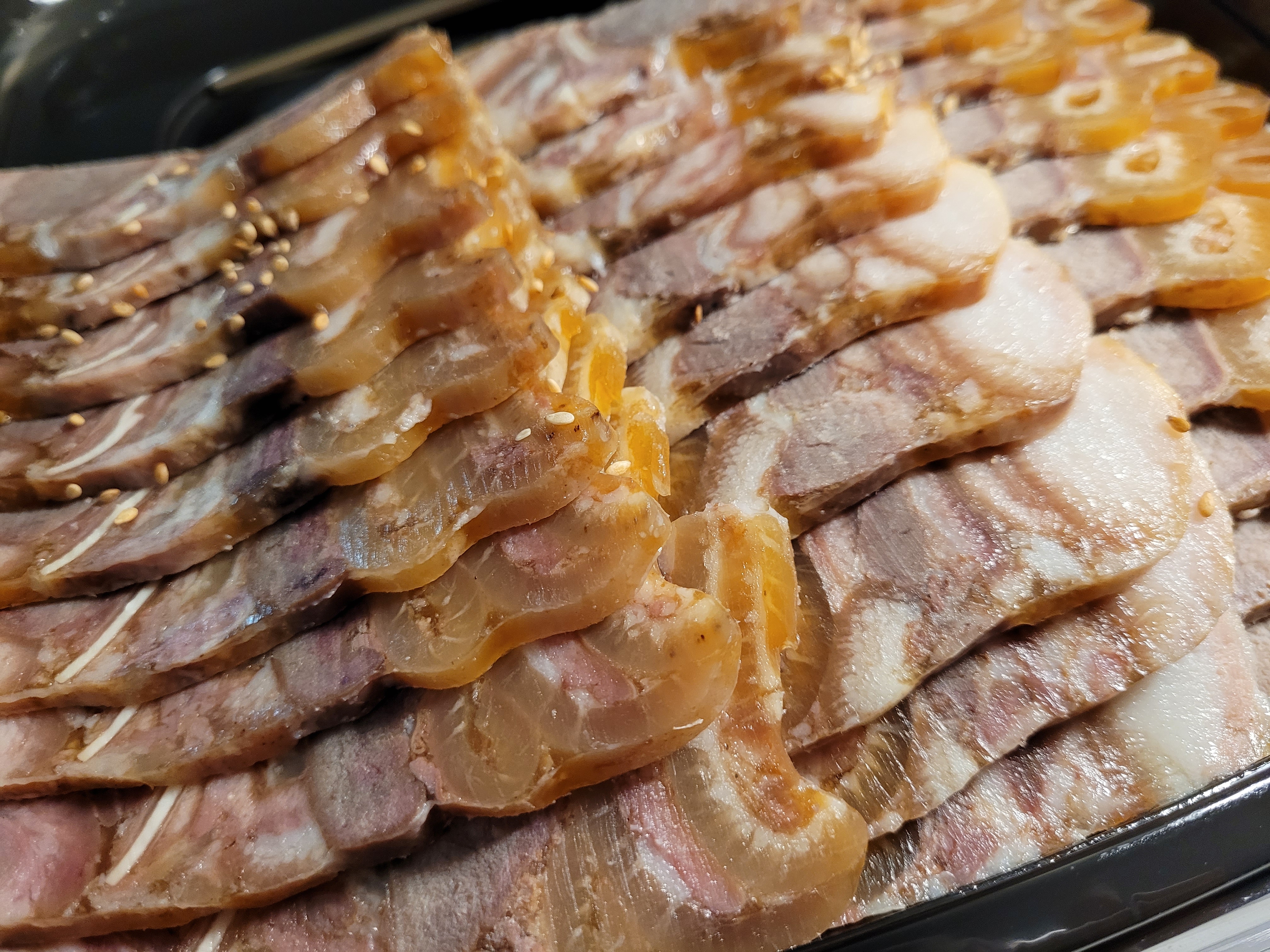 살코기랑 머릿고기 비율이 적절해야맛있는데, 저흰 잘 골라온것 같아요.