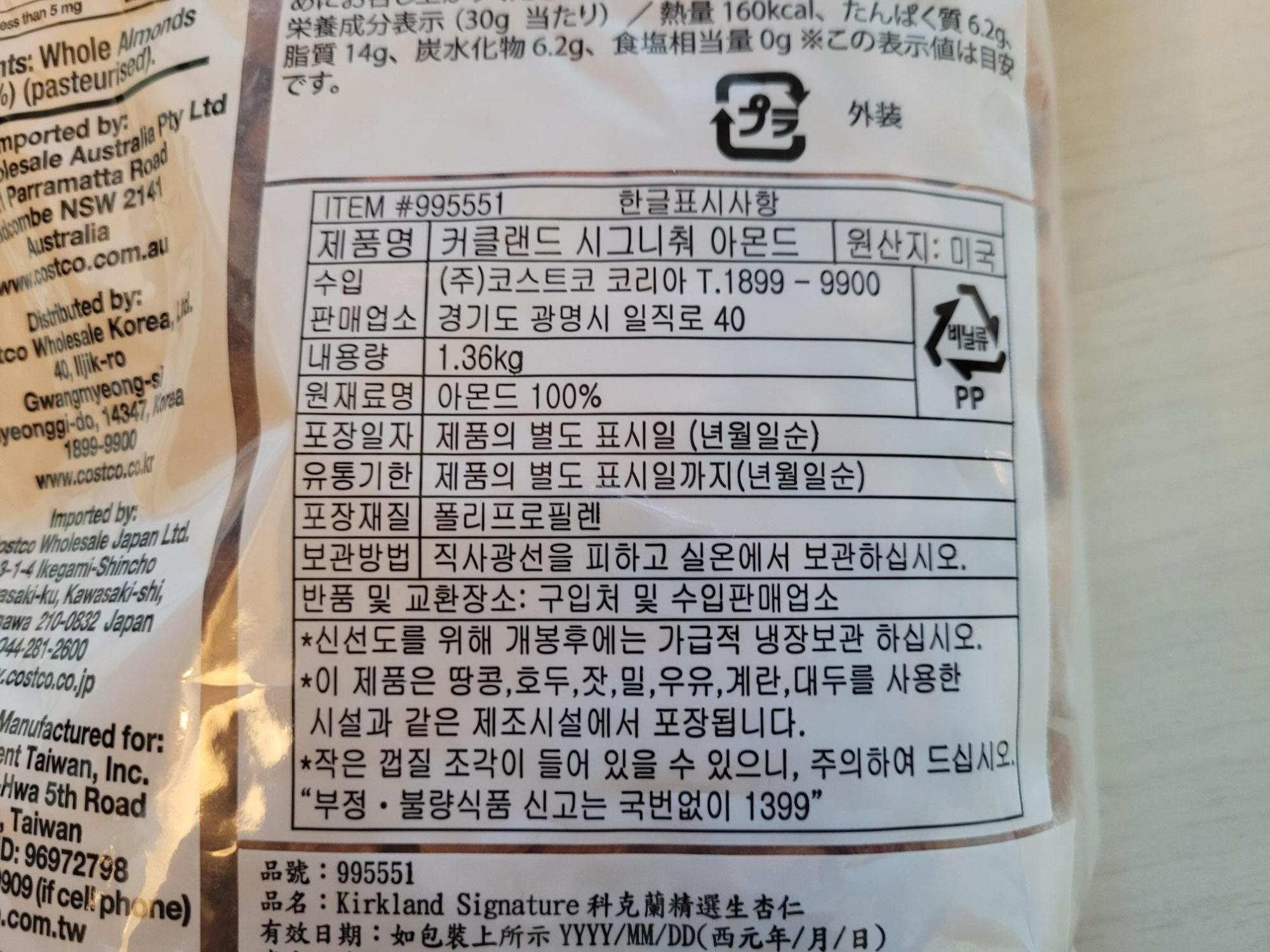 아몬드는 미국산이고요. 개봉후에는 냉장보관하는게 좋습니다.
