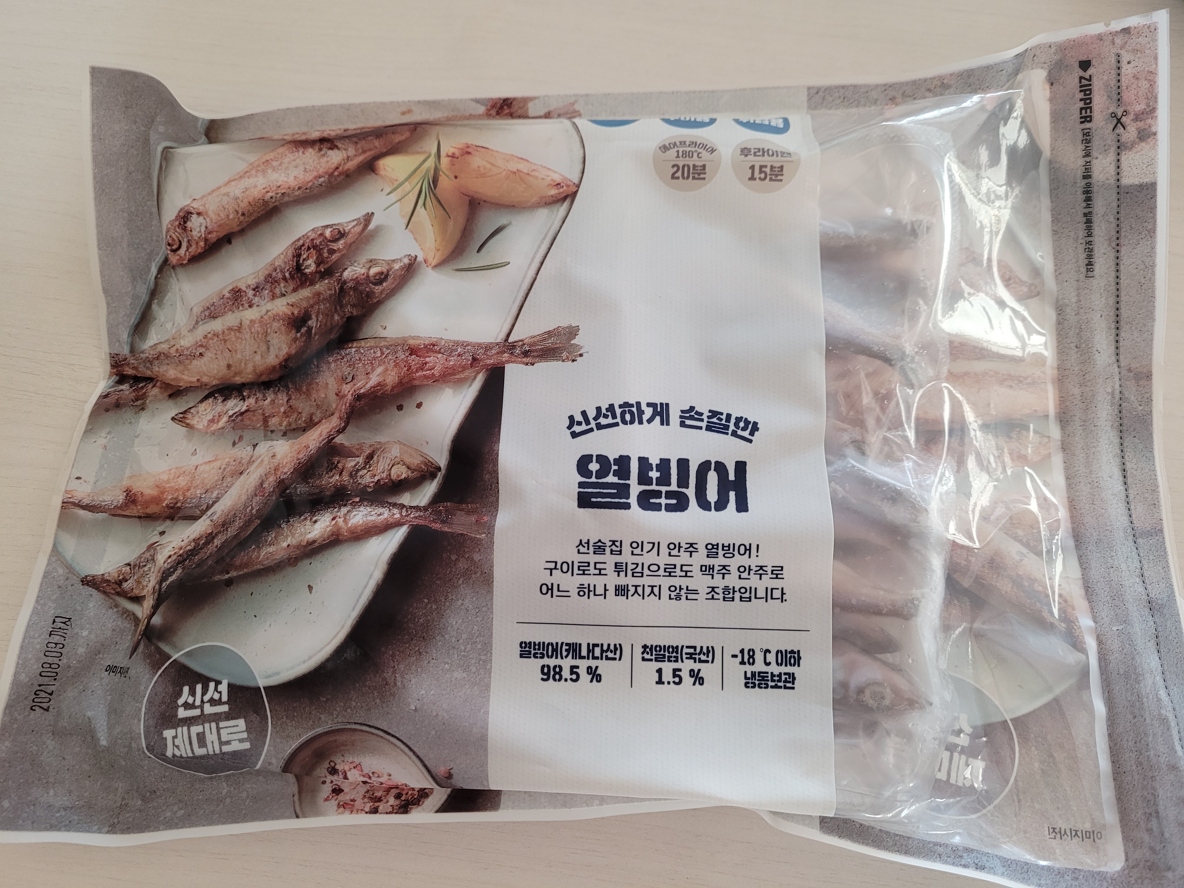 열빙어를 에어프라이어에 구우면 알이 꽉 찬 열빙어구이가 된다고 추천하길래 구입해봤어요.
