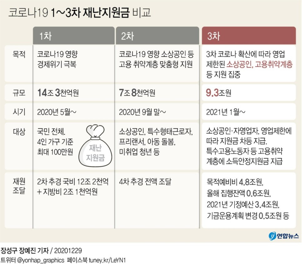 3차 재난지원금에 대한 세부사항이 발표되었습니다.