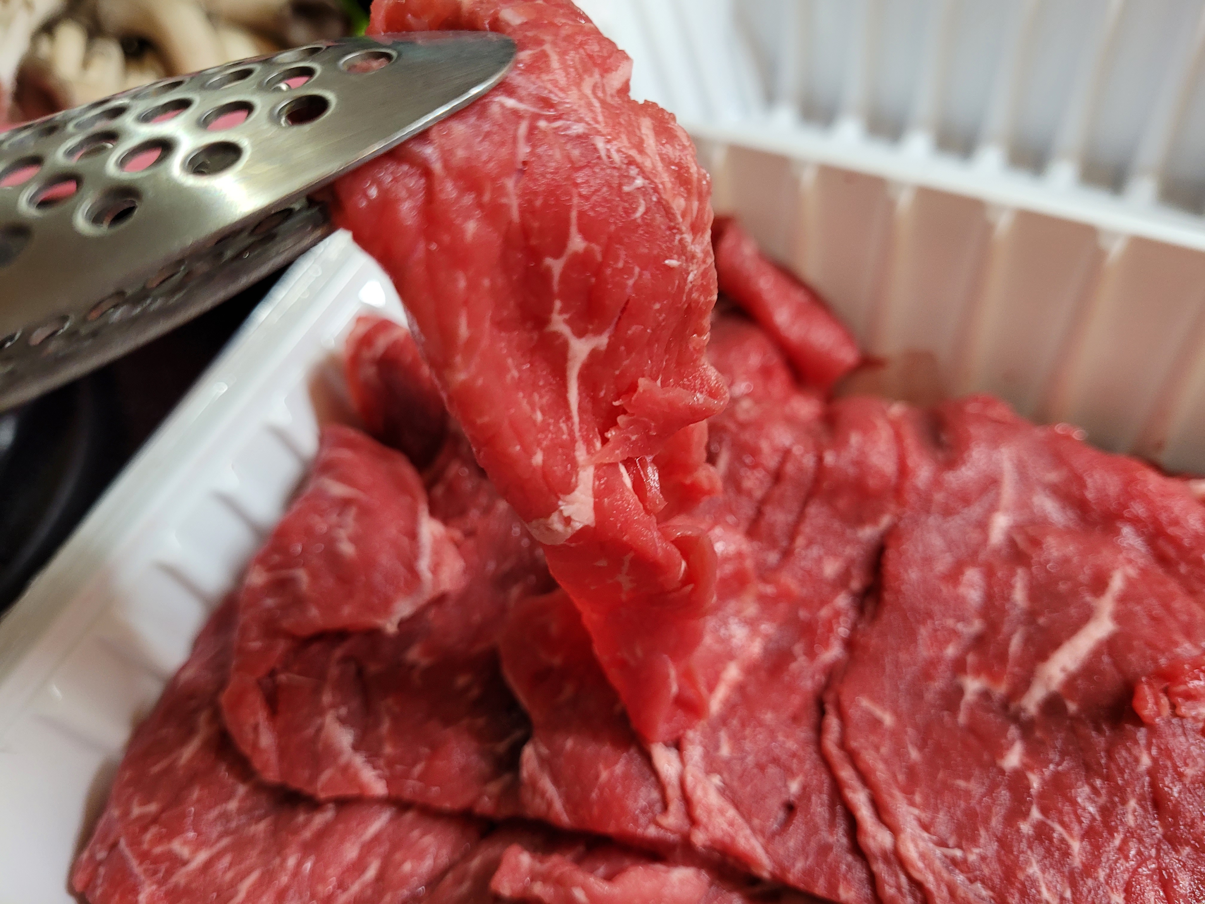 샤브샤브용 고기 두께는 이렇게 적당히 얇고 맛있었어요.