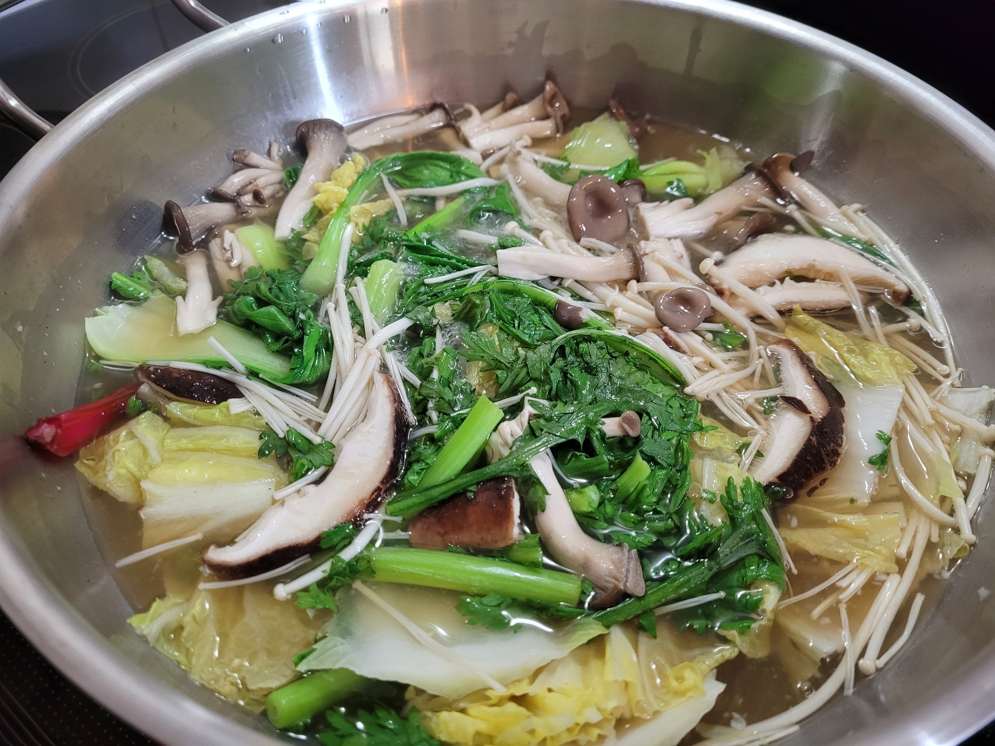 알배추, 청경채, 느타리버섯, 표고버섯, 팽이버섯, 쑥갓, 적근대, 비타민이 들어있어요.