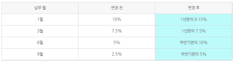 하지만 올해부터는 지방세법이 개정됨에 따라 할인율이 변경되었습니다.