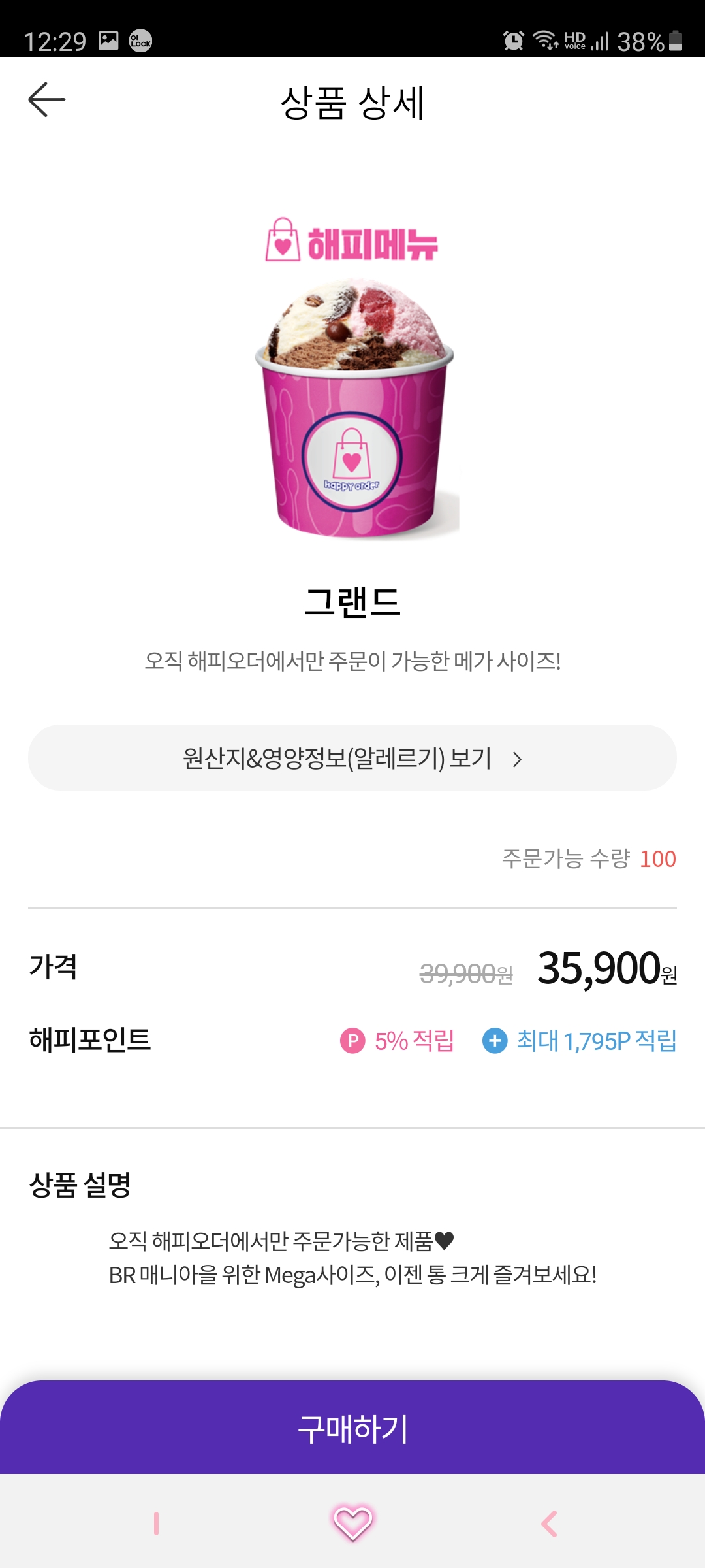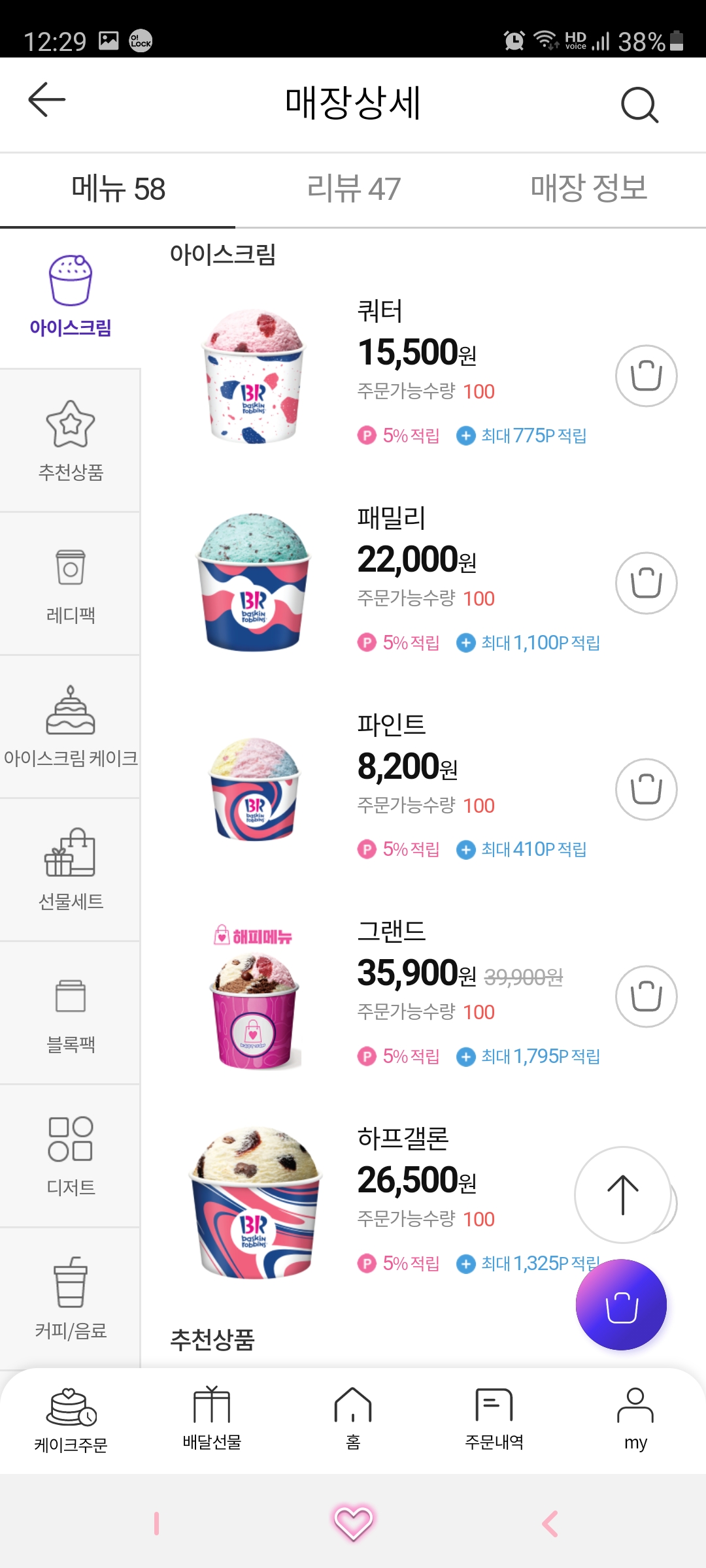 저는 32000원짜리 기프티콘이 있어서 그랜드사이즈 아이스크림을 골랐어요.