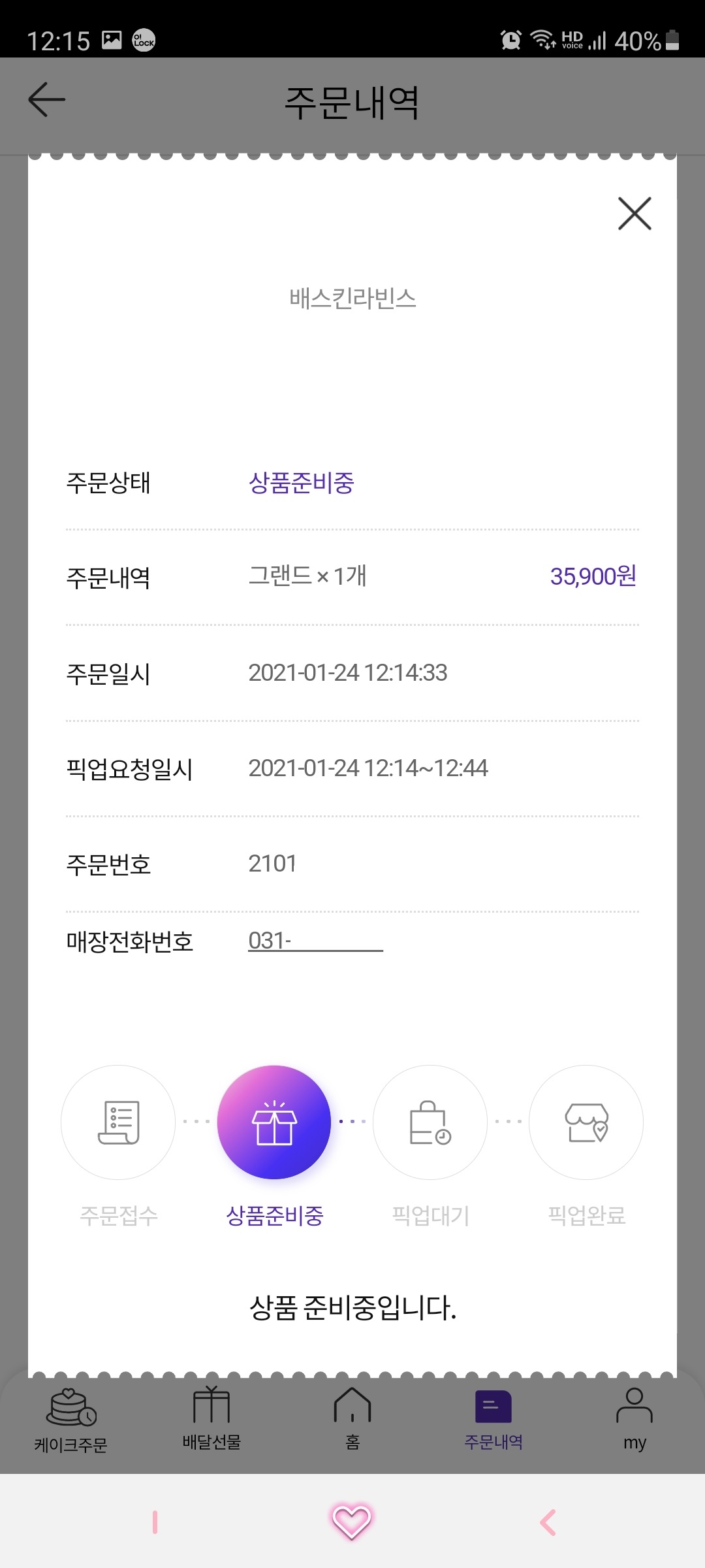 4. 저는 집앞 매장에서 픽업할거여서, 주문 후 매장에 방문했어요.
