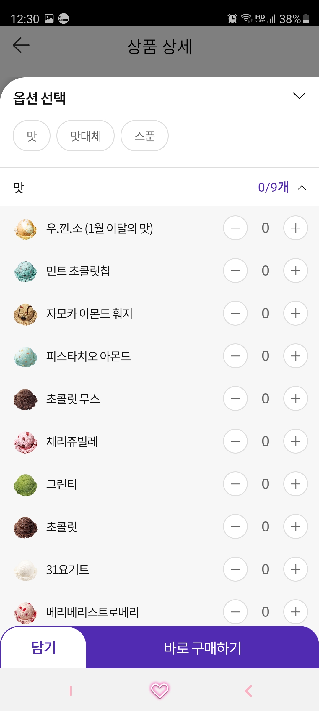2. 구매하기를 누르시면 아이스크림 맛을 고를 수 있어요.