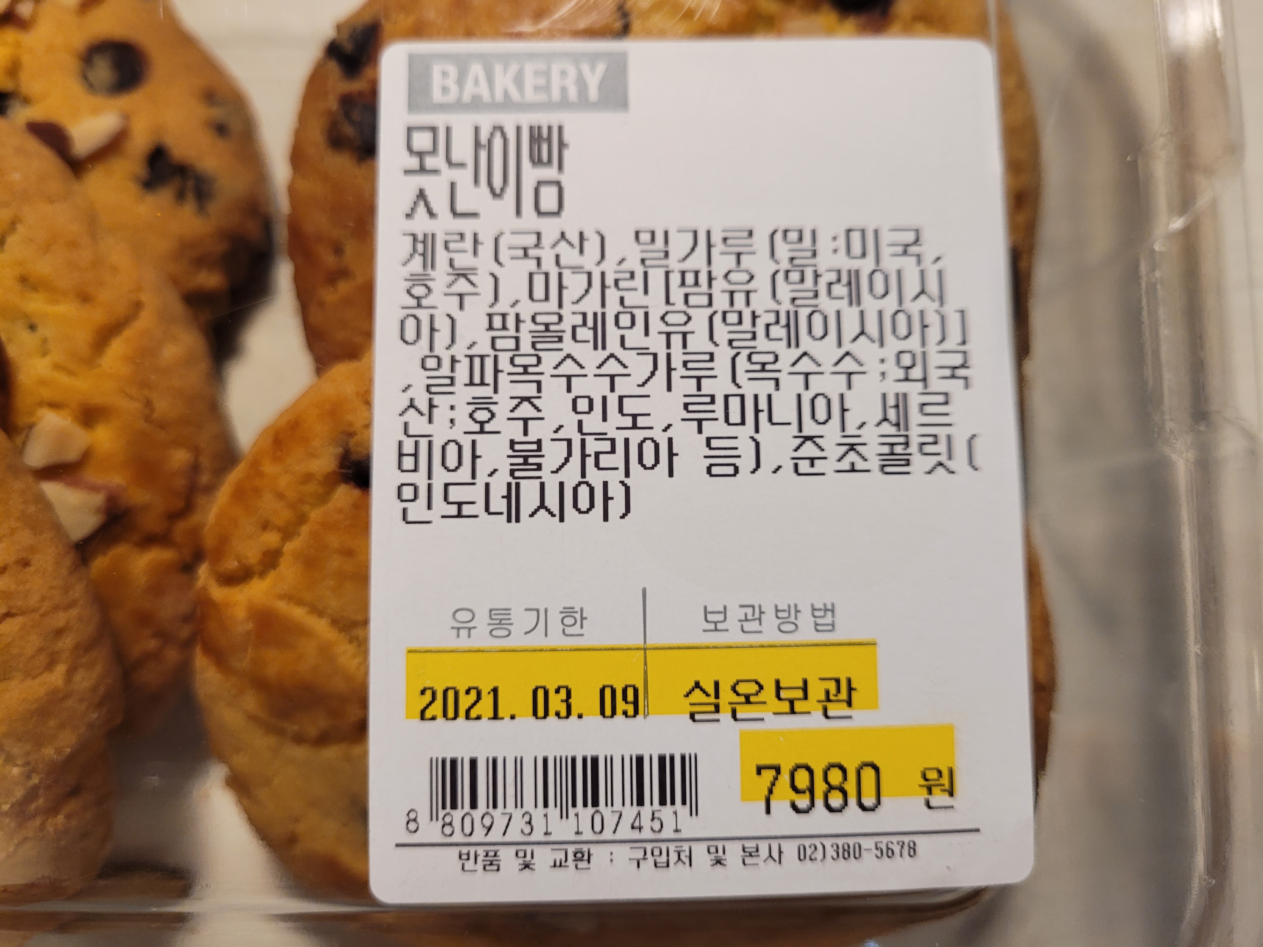 원재료 보시면 아시겠지만 계란, 옥수수, 초콜렛이 주원료인 빵인것같아요.