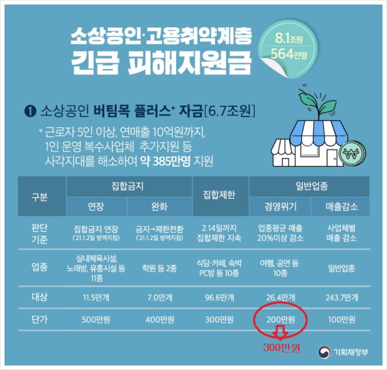 1. 소상공인. 자영업자대상 100~500만원까지 지원