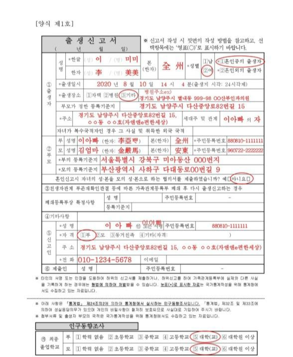 다만, 출생신고서 작성란에 부,모의 등록기준지를 적어야하고, 본적과 본을 작성해야하니 미리 알아가셔야합니다.