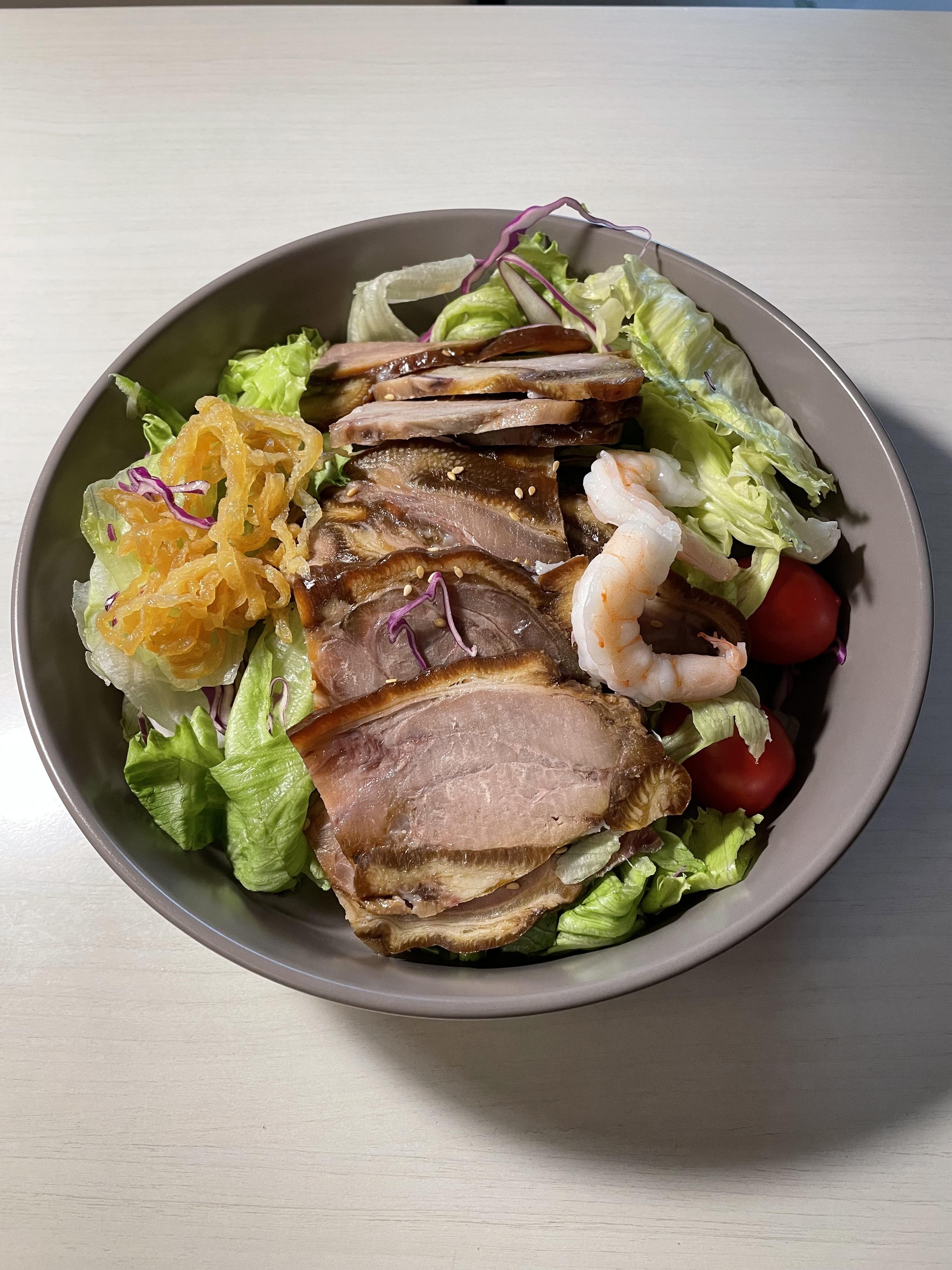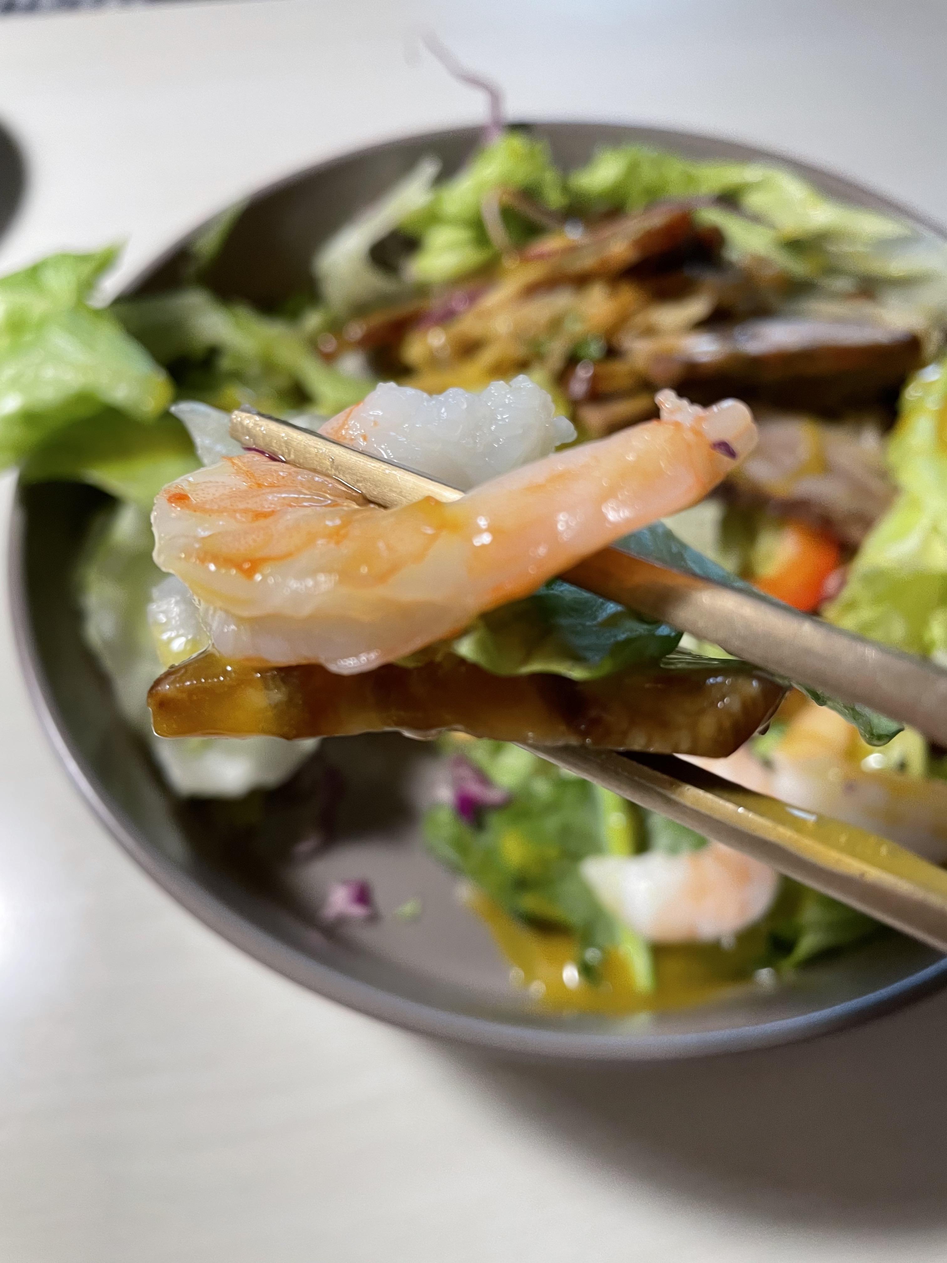 족발하고 새우 채소와 함께 먹어봅니다. 아무래도 족발이 차갑다 보니 편육같은 느낌이네요.