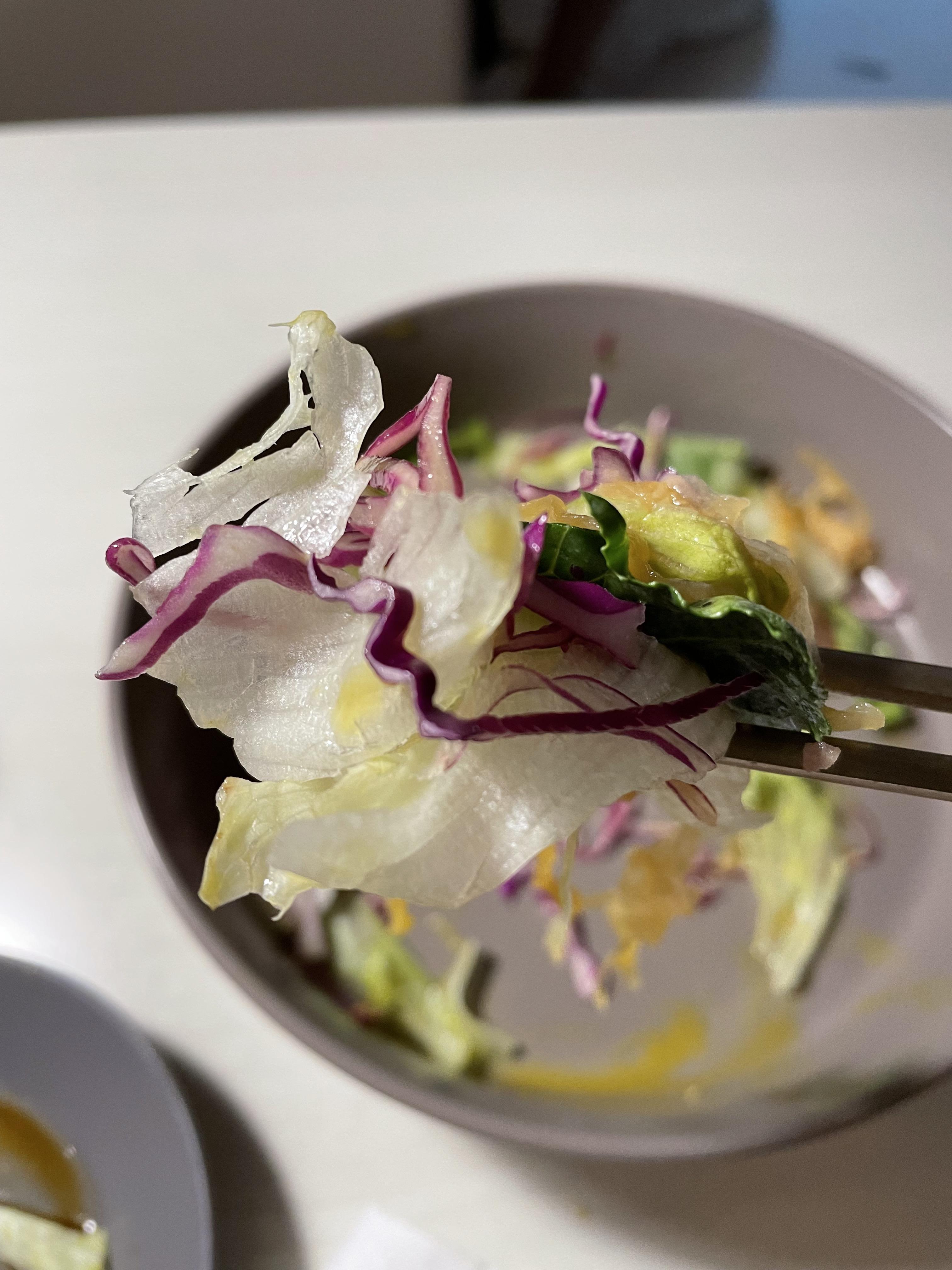 여기서 주의할 점은 저 냉채소스 겨자 코 쏘는 느낌이 엄청 강하더라구요. 고루고루 채소랑 고기랑 잘 섞어 주세요. 소스 뭉친 부분 먹었다가는 코가 아주 찡 합니다.