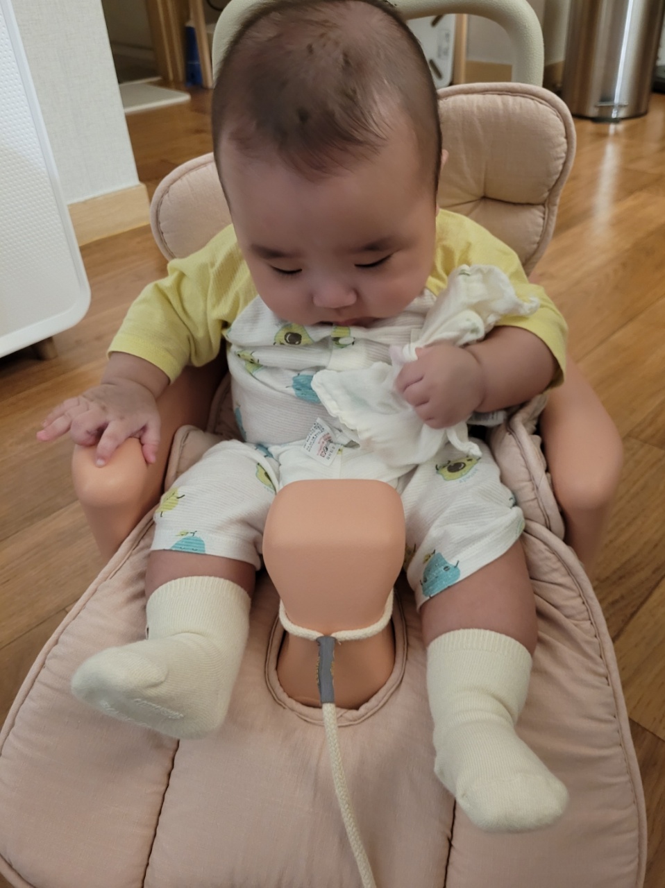 범보의자에서는 10분을 못버티고 찡찡거리는데 트립트랩에선 제법 오래있었어요.