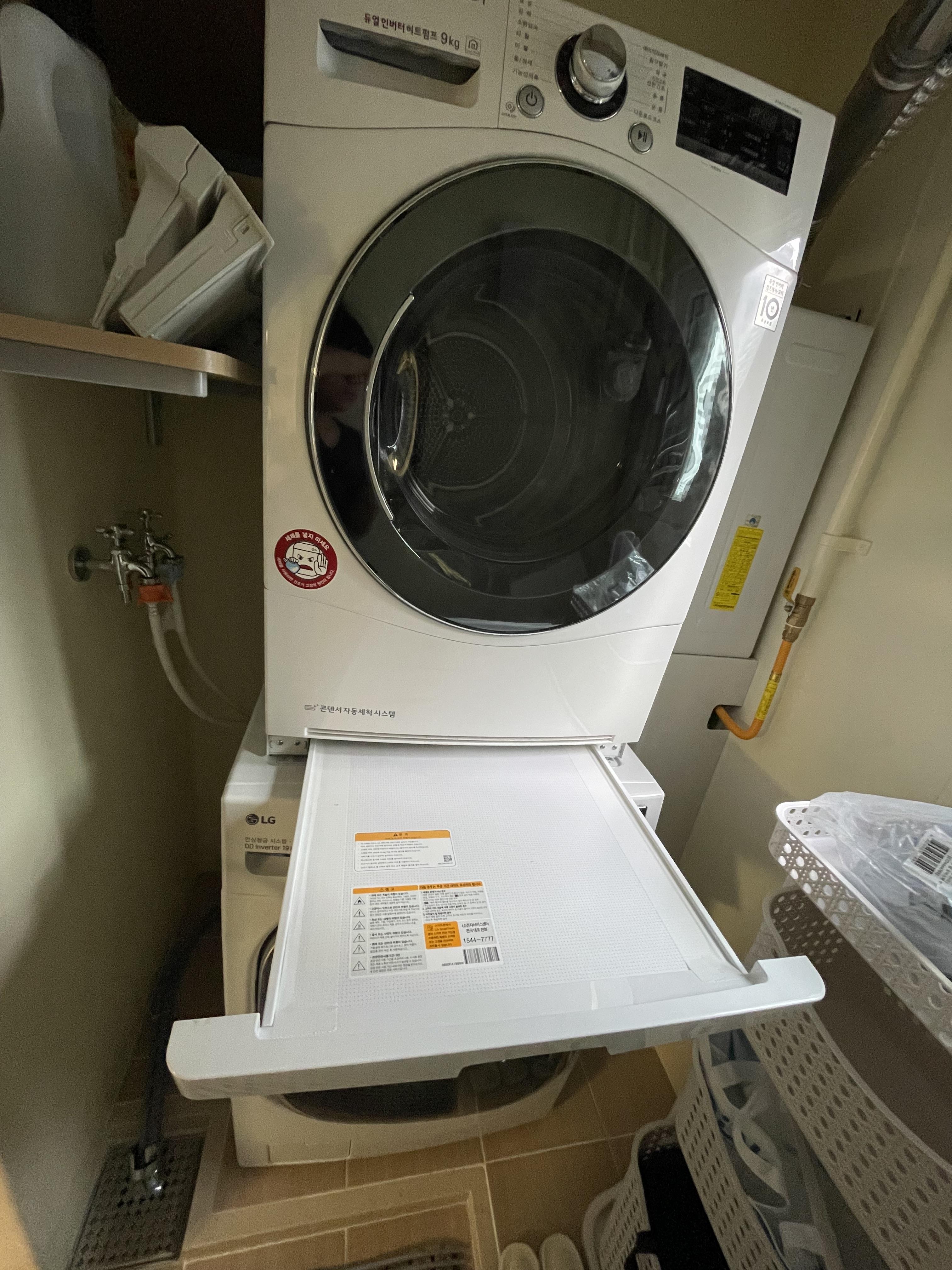 이사를 하면서 기존에 사용하던 LG 전자 세탁기, 건조기를 LG 서랍형 스태킹 키트로 직렬 설치 하였습니다.