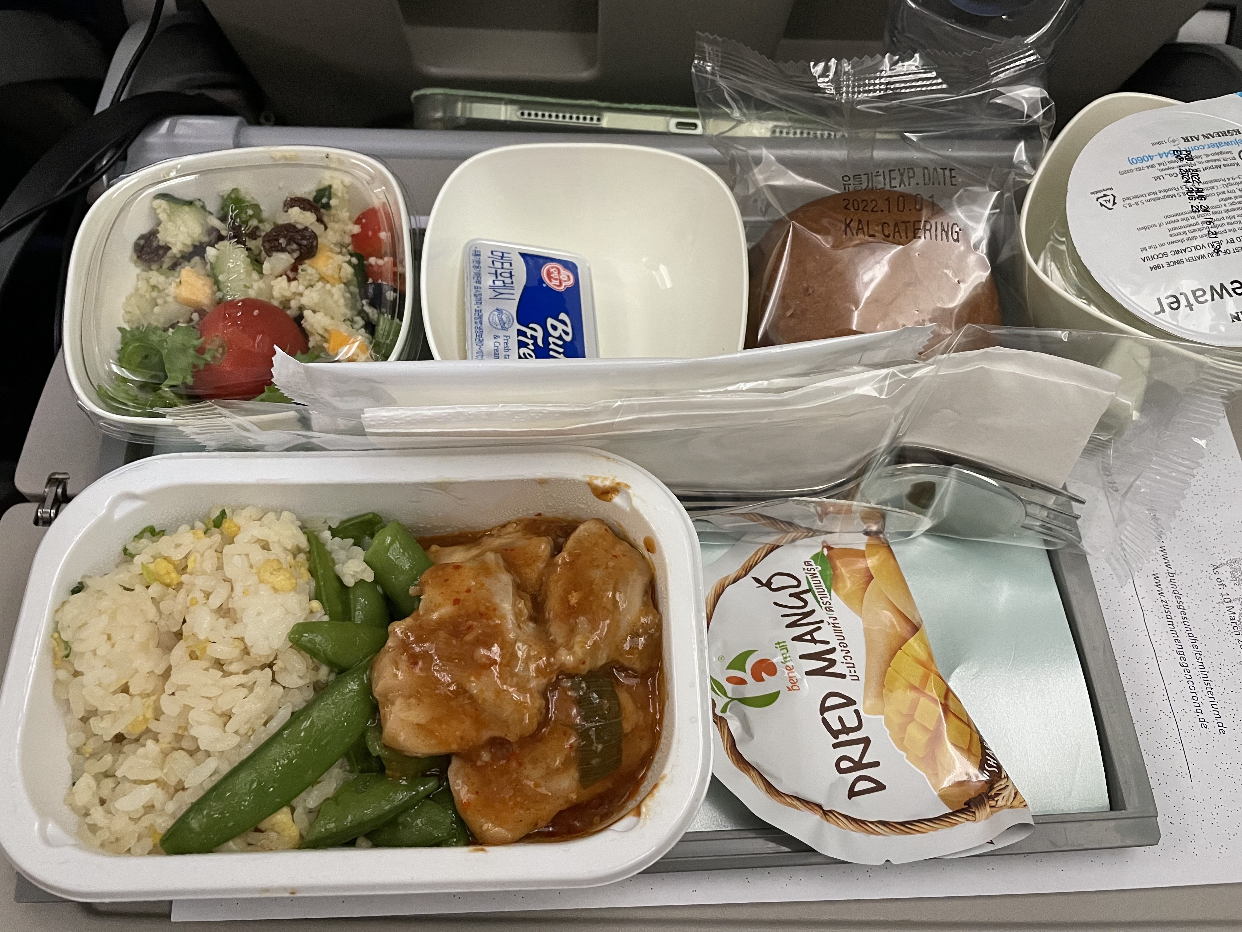 착륙하기 2시간 전에 저녁 식사가 나옵니다. 중국식 볶음밥과 닭고기 입니다.