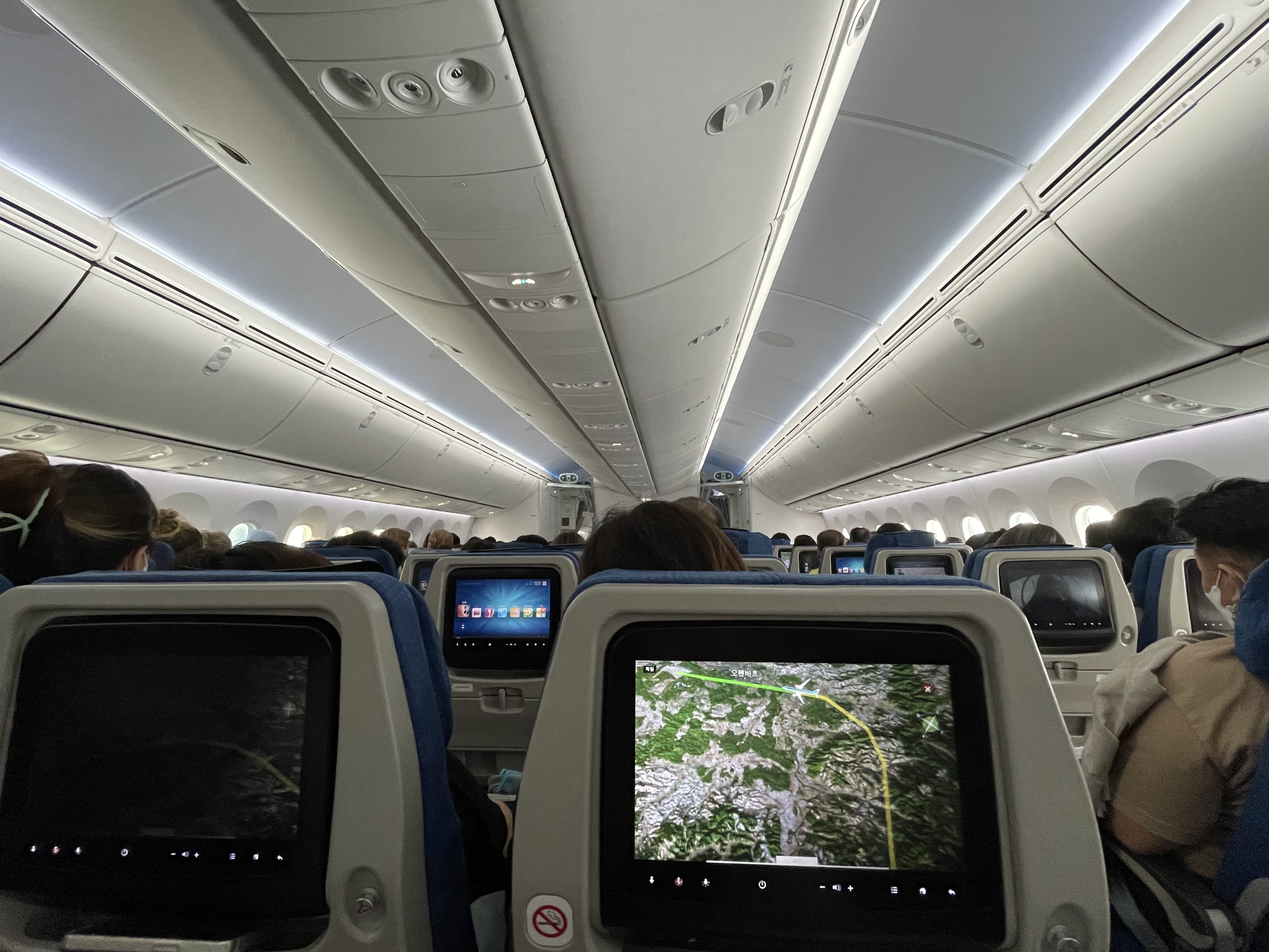 이코노미 클래스 좌석 배열은 3 - 3 - 3 입니다. 최신 기종이다 보니 엔터테이먼트 시스템의 터치감과 반응 속도가 빨라서 좋았습니다.