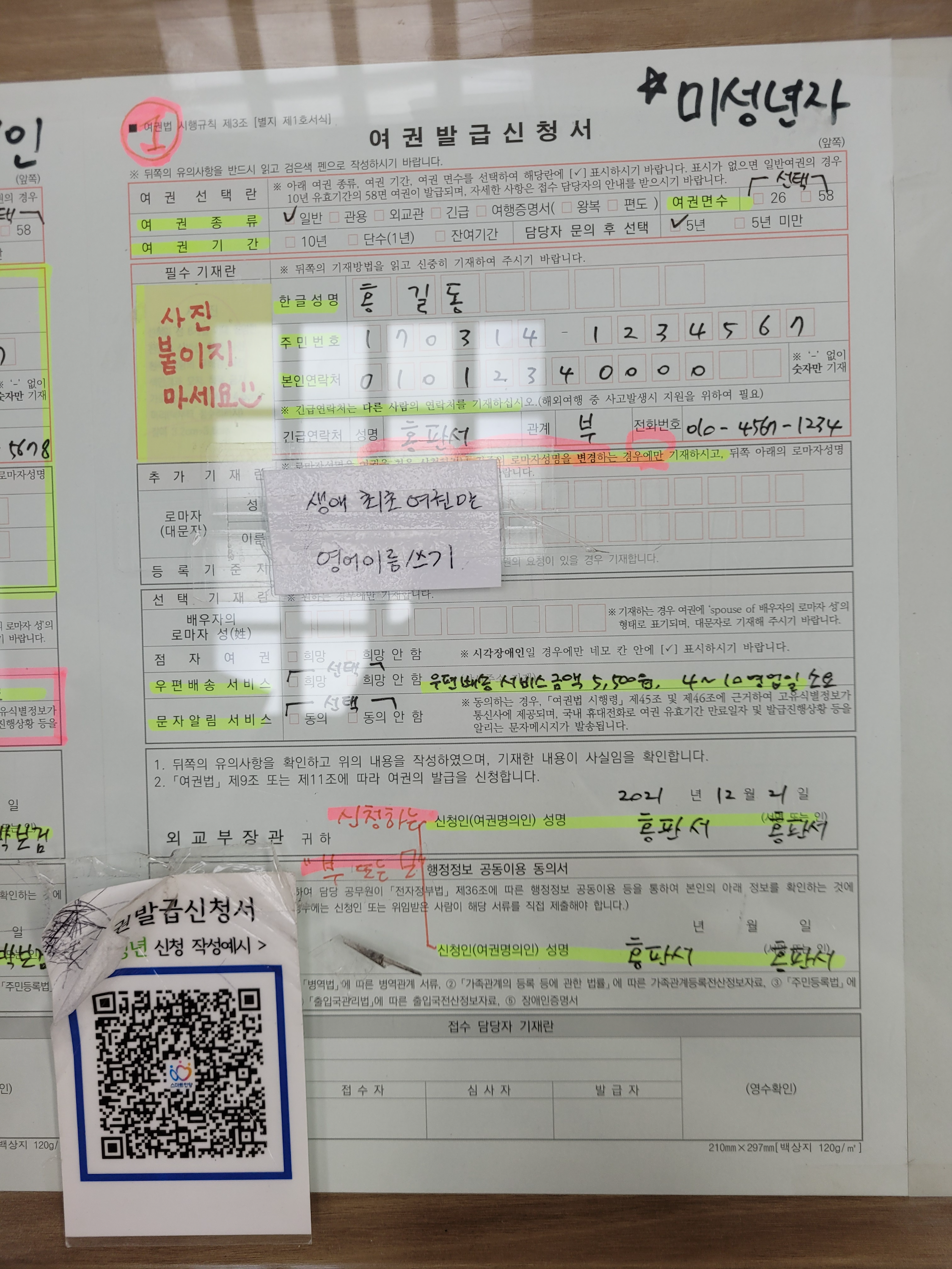여권사진과 부모님 신분증만 잘 챙겨서 신청하러가면됩니다.