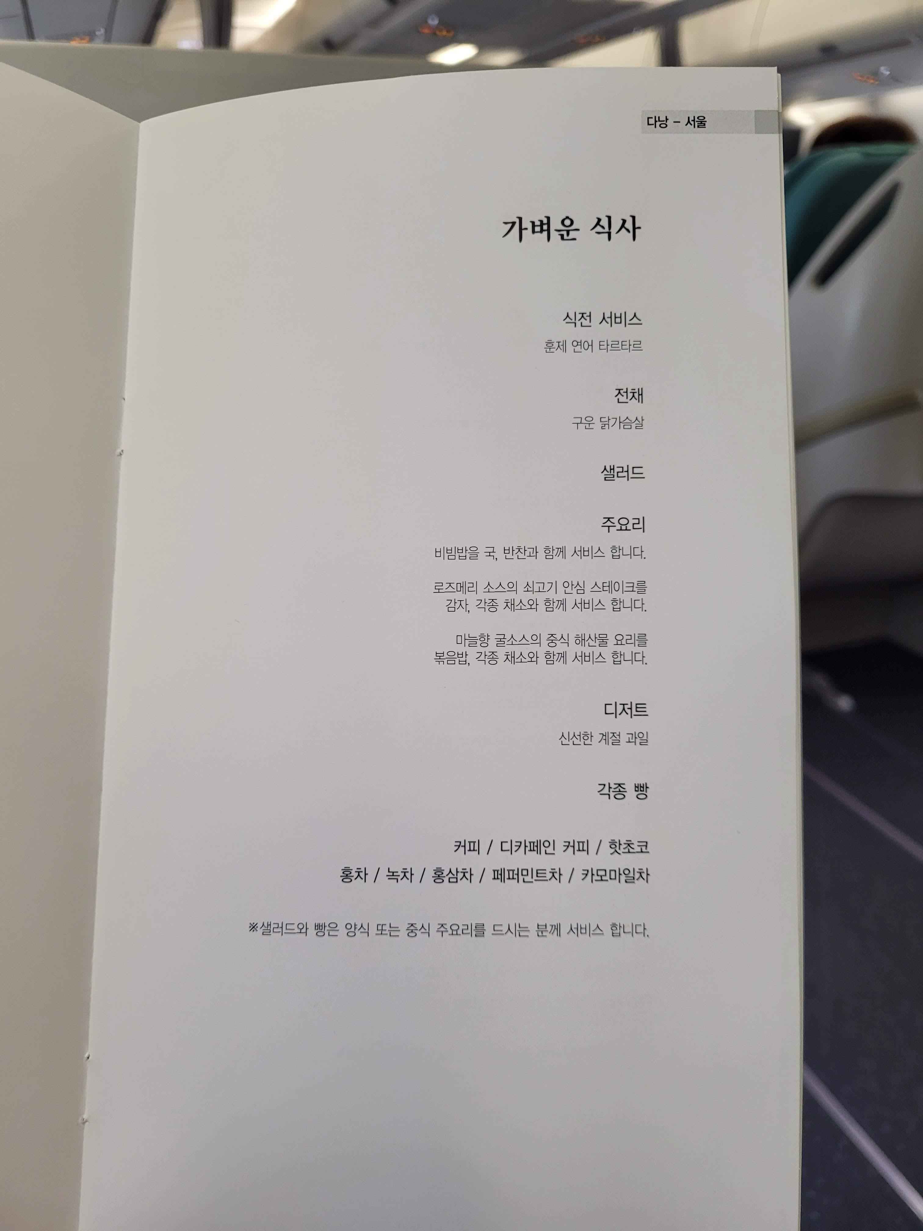 대한항공 인천-다낭 프레스티지 기내식